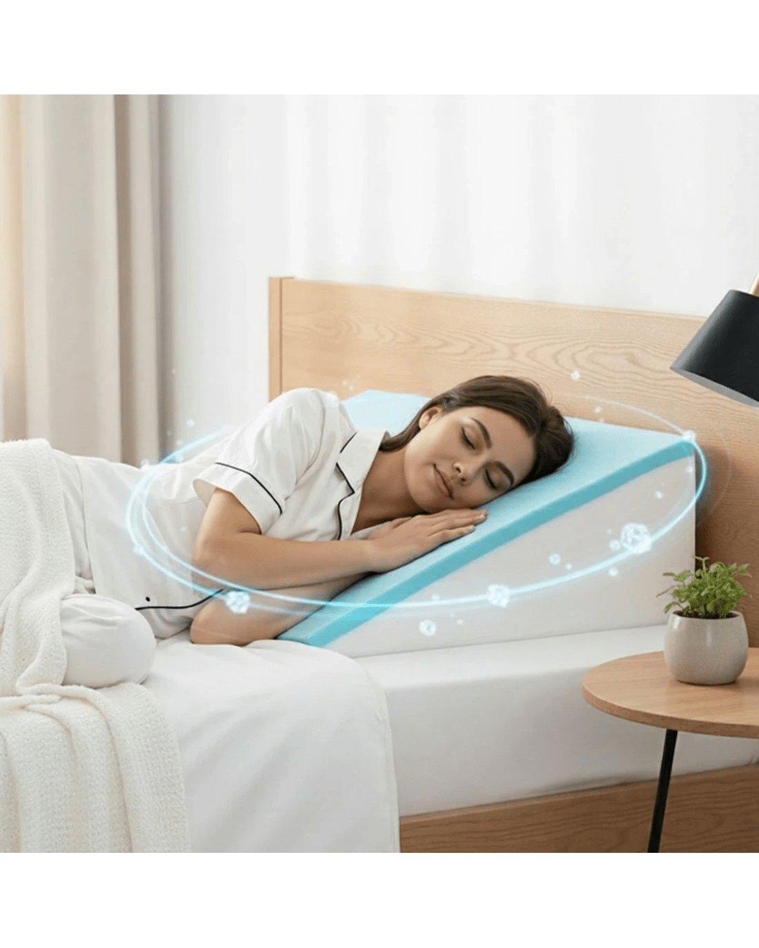 Transform your comfort with the Giselle Bedding Wedge Pillow. This memory foam pillow features a cooling gel-infused top layer and a dense support base. Its ergonomic design is ideal for elevated sleeping, reading, or providing maternity back and leg support. Encased in a soft, breathable bamboo fabric cover that is removable and washable, this wedge pillow offers premium comfort and easy care. Perfect for aiding comfort during acid reflux or enhancing relaxation.