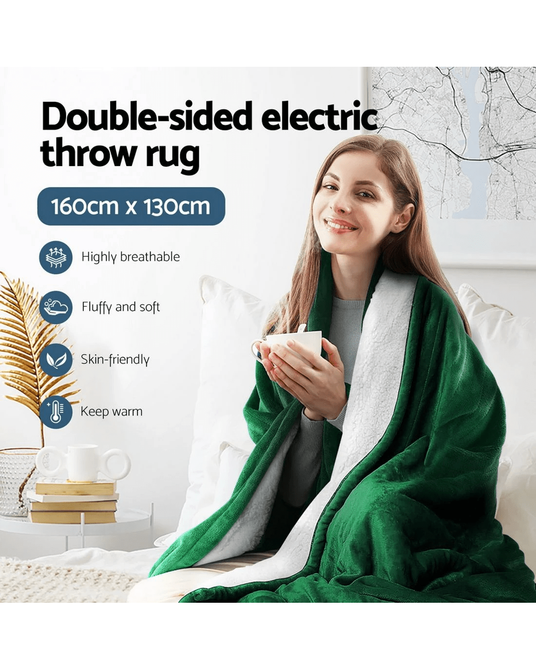 Double-sided electric throw rug