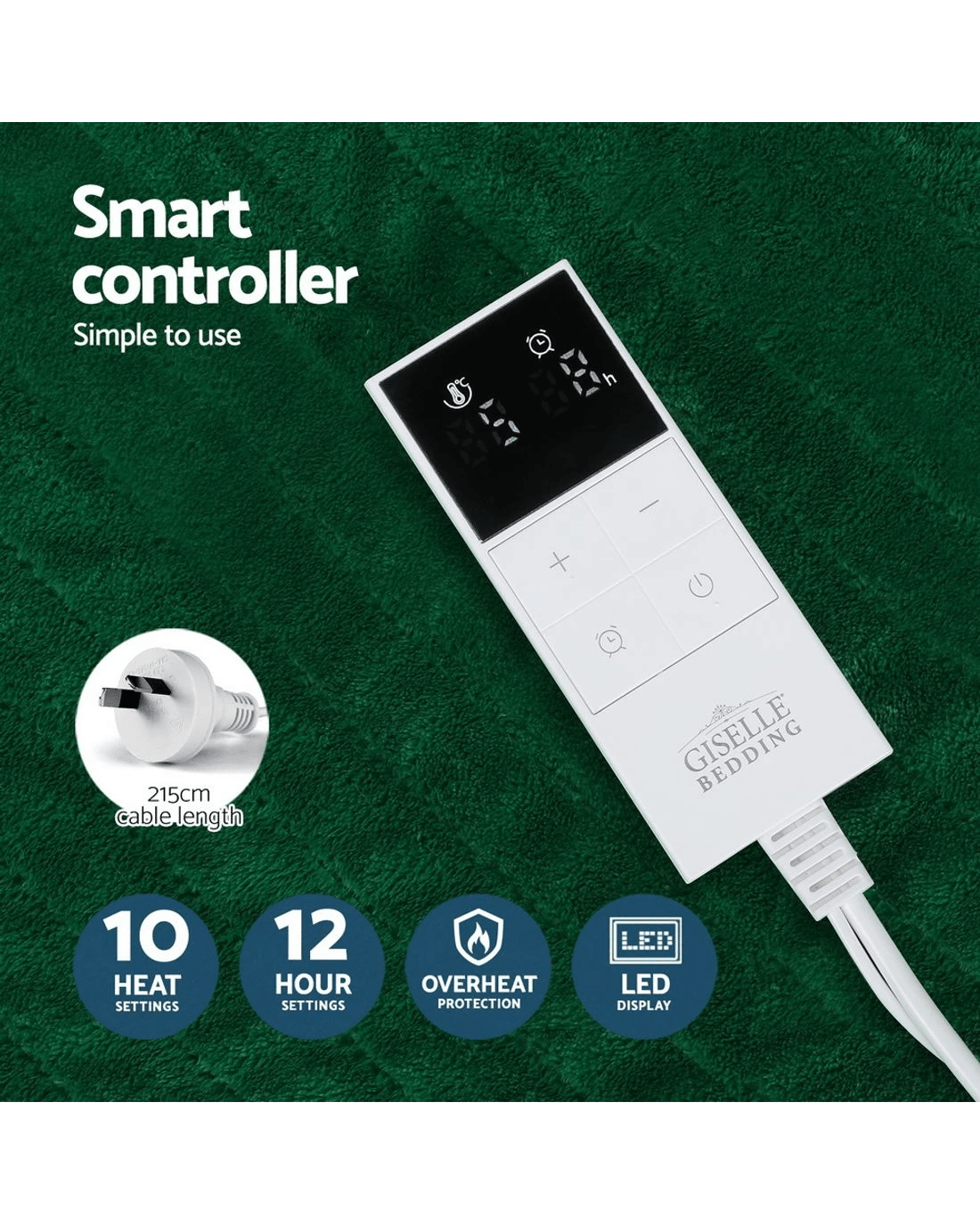 Get that warm and cosy feeling every day with a Giselle Bedding Electric Throw Rug. The double-sided throw rug is made from premium flannel and sherpa fabric, our electric throw rug is just the thing to help you cut down on costly heating bills while still enjoying the heat up-close. The throw rug has all the features of our electric blankets with up to 9 temperature settings, a 9-hour timer, overheat protection, automatic shut-off and a detachable controller with LED display so you can always be in control of the temperature. It is anti-dust mite and bacteria and is machine washable for a clean blanket time and time again. Keep your bedroom or living room cosy and comfortable with a warm and huggable Giselle Bedding Electric Throw Rug.