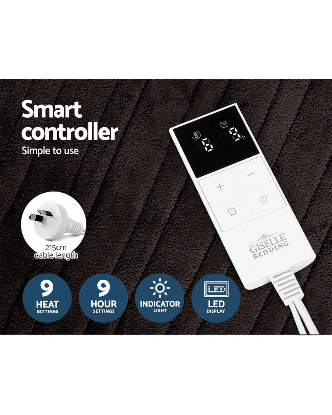 Snuggle up in our Giselle Bedding Electric Throw Rug while on your sofa or couch and we guarantee you will love that warm and cosy feeling instantly. Made of lightweight and super-soft high-density coral fleece material, our electric throw rug is just the thing to help you cut down on those costly heating bills and yet enjoy the heat up close. Perfect for both indoor and outdoor use (away from the wet), the electric throw rug has all the attributes of our electric blanket with up to nine temperature settings, a 9-hour timer, overheat protection and a detachable controller with LED display. It is also machine washable for a clean rug time and again.