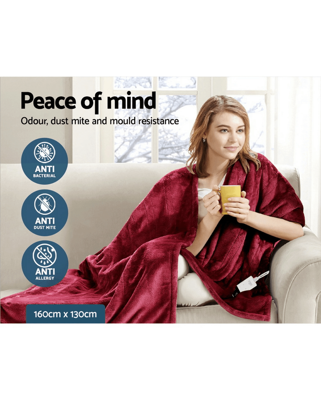 Snuggle up in our Giselle Bedding Electric Throw Rug while on your sofa or couch and we guarantee you will love that warm and cosy feeling instantly. Made of lightweight and super-soft high-density coral fleece material, our electric throw rug is just the thing to help you cut down on those costly heating bills and yet enjoy the heat up close. Perfect for both indoor and outdoor use (away from the wet), the electric throw rug has all the attributes of our electric blanket with up to nine temperature settings, a 9-hour timer, overheat protection and a detachable controller with LED display. It is also machine washable for a clean rug time and again.