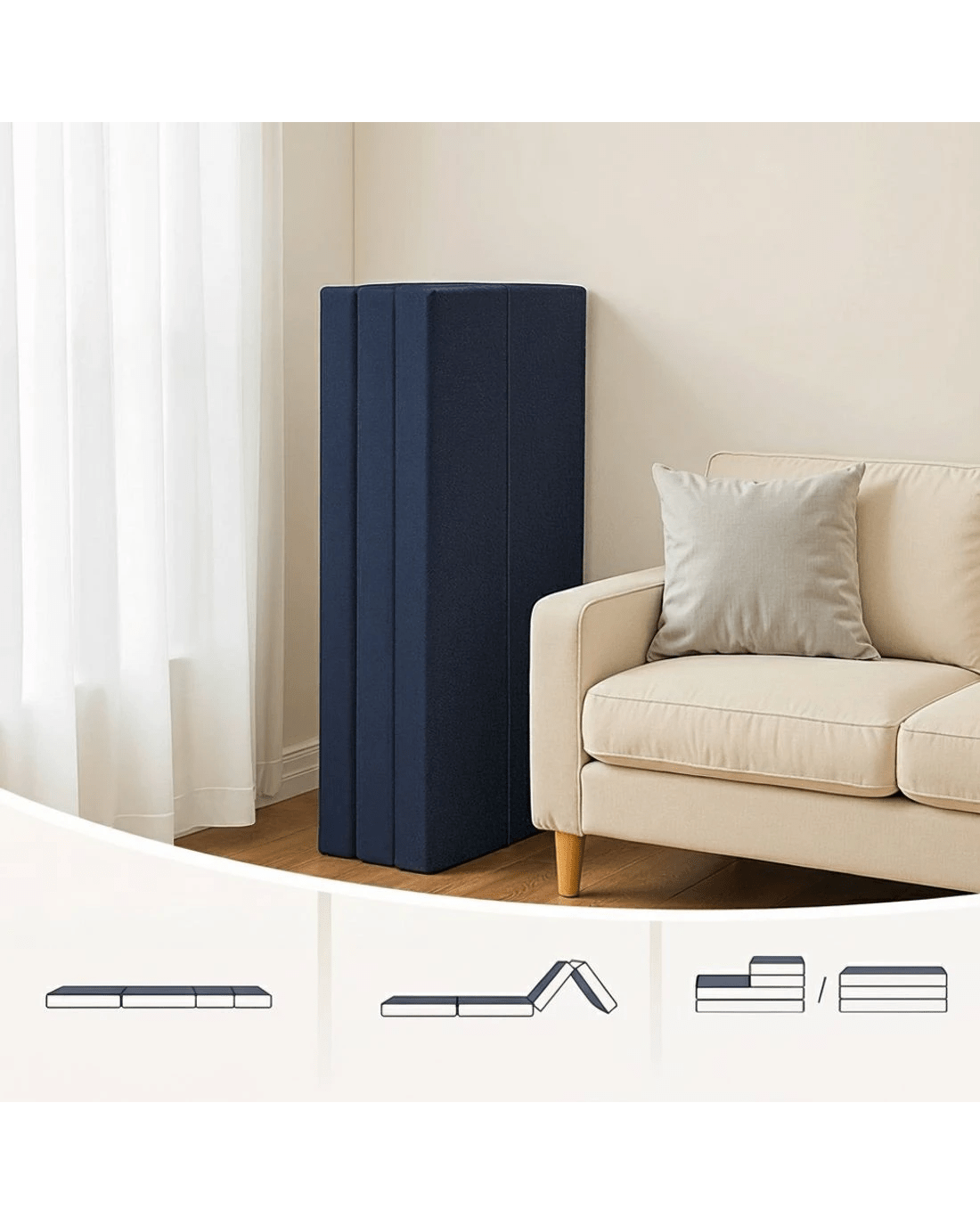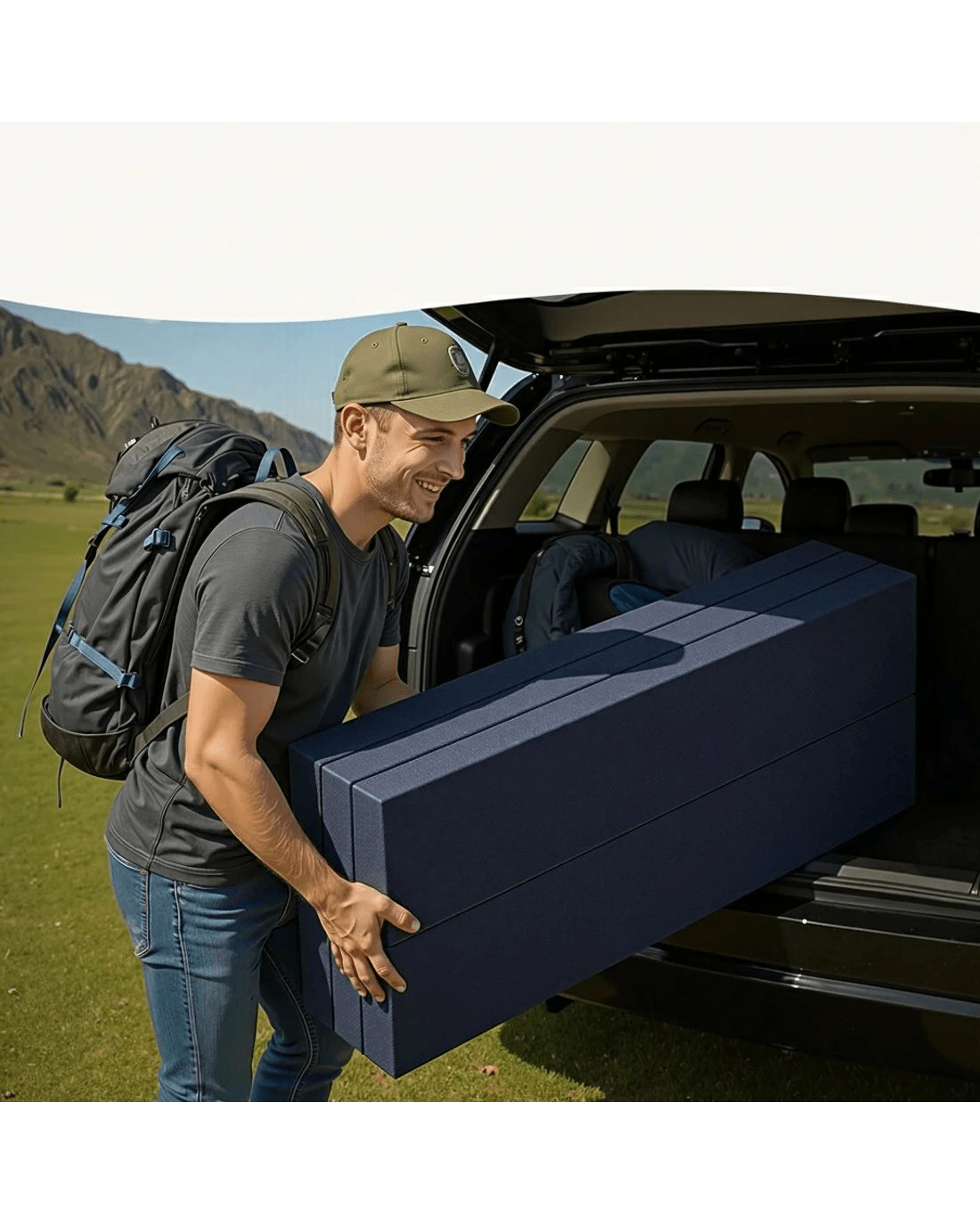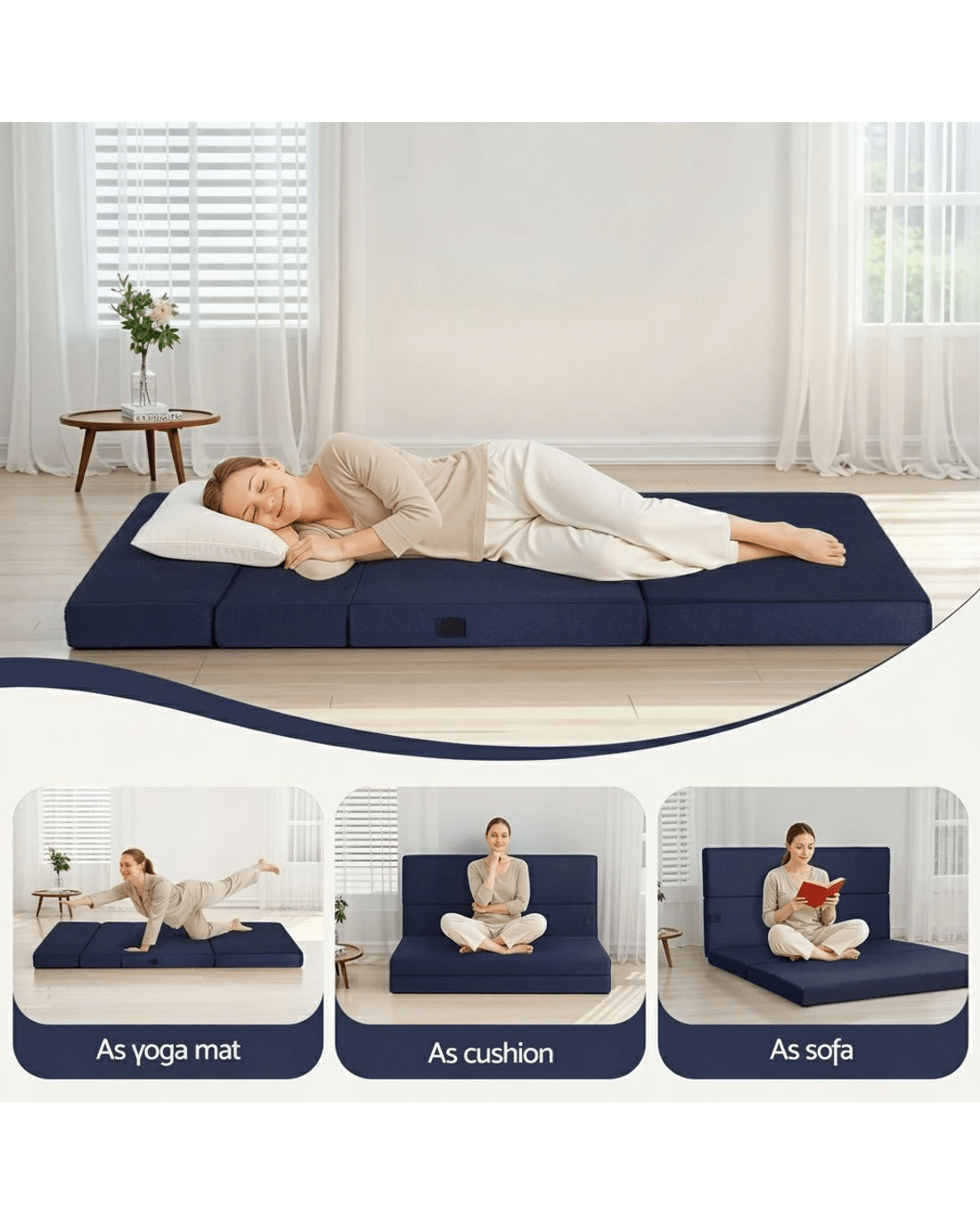 Giselle Bedding's foldable mattress features a 4-fold design with breathable mesh fabric, perfect for sitting or sleeping. Built with high-density foam and secured with hook and loop fasteners, it's lightweight, supportive, and easy to store. Great for guests or camping.
