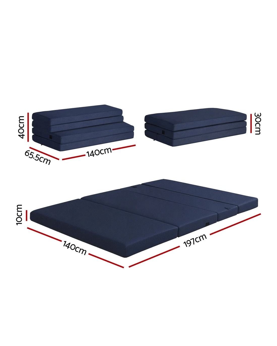 Giselle Foldable Mattress Folding Foam Mattresses Portable Floor Mat Double - Double Bed - Blue