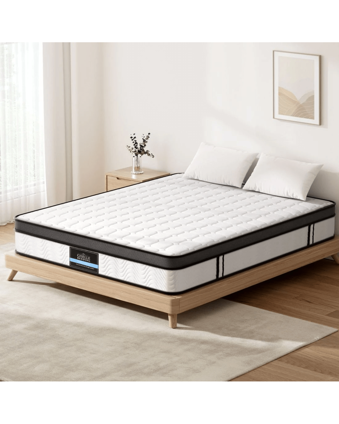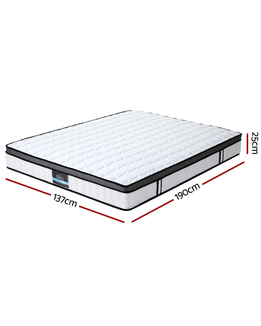 Indulge in luxury and comfort with the Giselle Bedding Sorrento Series Mattress. Boasting a generous 25cm thickness and a medium-firm feel, this mattress is crafted for both support and relaxation. Its Bonnell spring core features an enhanced 6-turn coil system, ensuring durability and stability for years to come. The inclusion of cool gel-infused memory foam and high-density foam provides cooling comfort and plush support, while the soft quilting top layer adds an extra layer of softness. Hypoallergenic and resistant to dust mites and mould, it promotes a healthier sleep environment. Experience superior support, even weight distribution, excellent ventilation, and a restful night's sleep with the Giselle Bedding Sorrento Series Mattress.