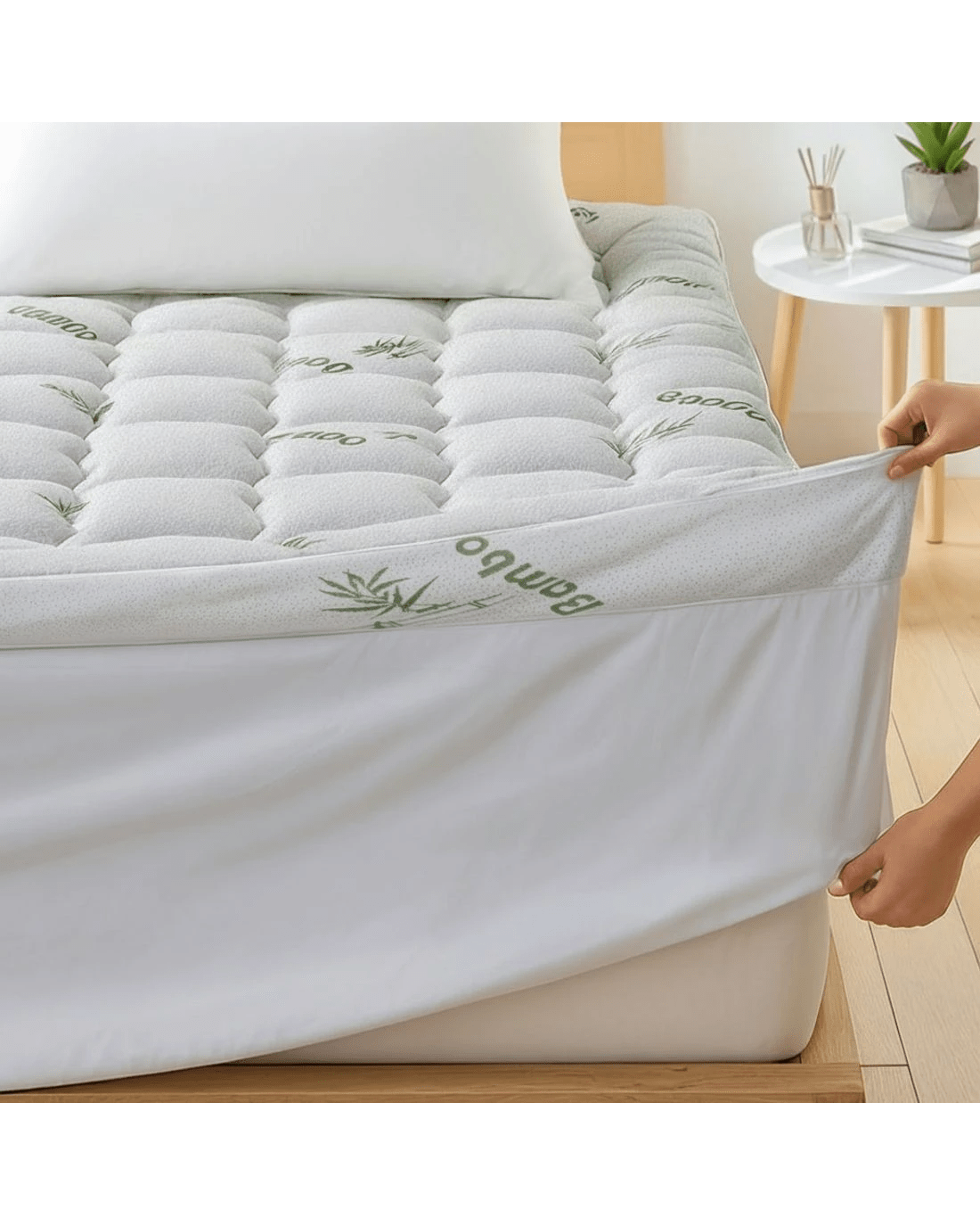 Sold by Aisle SixGiselle Bedding 1500GSM Pillowtop Mattress Topper Bamboo Mattress Pad for Back Pain Relief - White