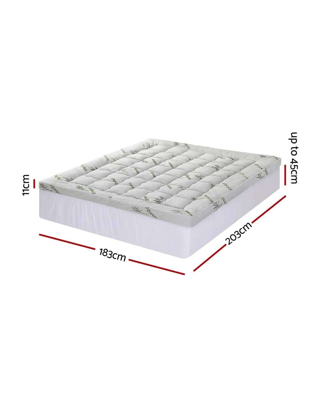 Elevate your sleep with the Giselle Bedding Pillowtop Topper, featuring an 11cm plush profile of 1500GSM hollow fiber beneath premium bamboo fabric. The 3D wave-check quilting enhances airflow while distributing weight evenly across your mattress. Designed for deep mattresses up to 45cm, this highly breathable topper arrives vacuum-packed for hygiene and is machine-washable for effortless maintenance.
