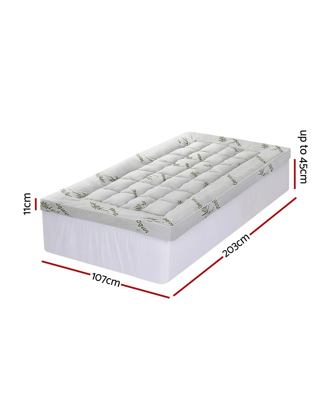 Sold by Aisle SixGiselle Bedding 1500GSM Pillowtop Mattress Topper Bamboo Mattress Pad for Back Pain Relief - King Single Bed - White