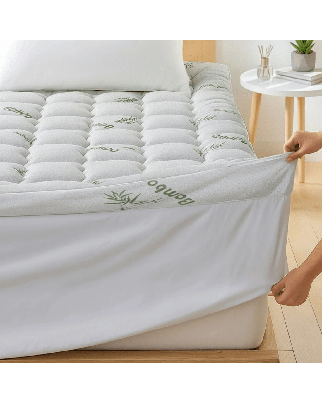 Elevate your sleep with the Giselle Bedding Pillowtop Topper, featuring an 11cm plush profile of 1500GSM hollow fiber beneath premium bamboo fabric. The 3D wave-check quilting enhances airflow while distributing weight evenly across your mattress. Designed for deep mattresses up to 45cm, this highly breathable topper arrives vacuum-packed for hygiene and is machine-washable for effortless maintenance.