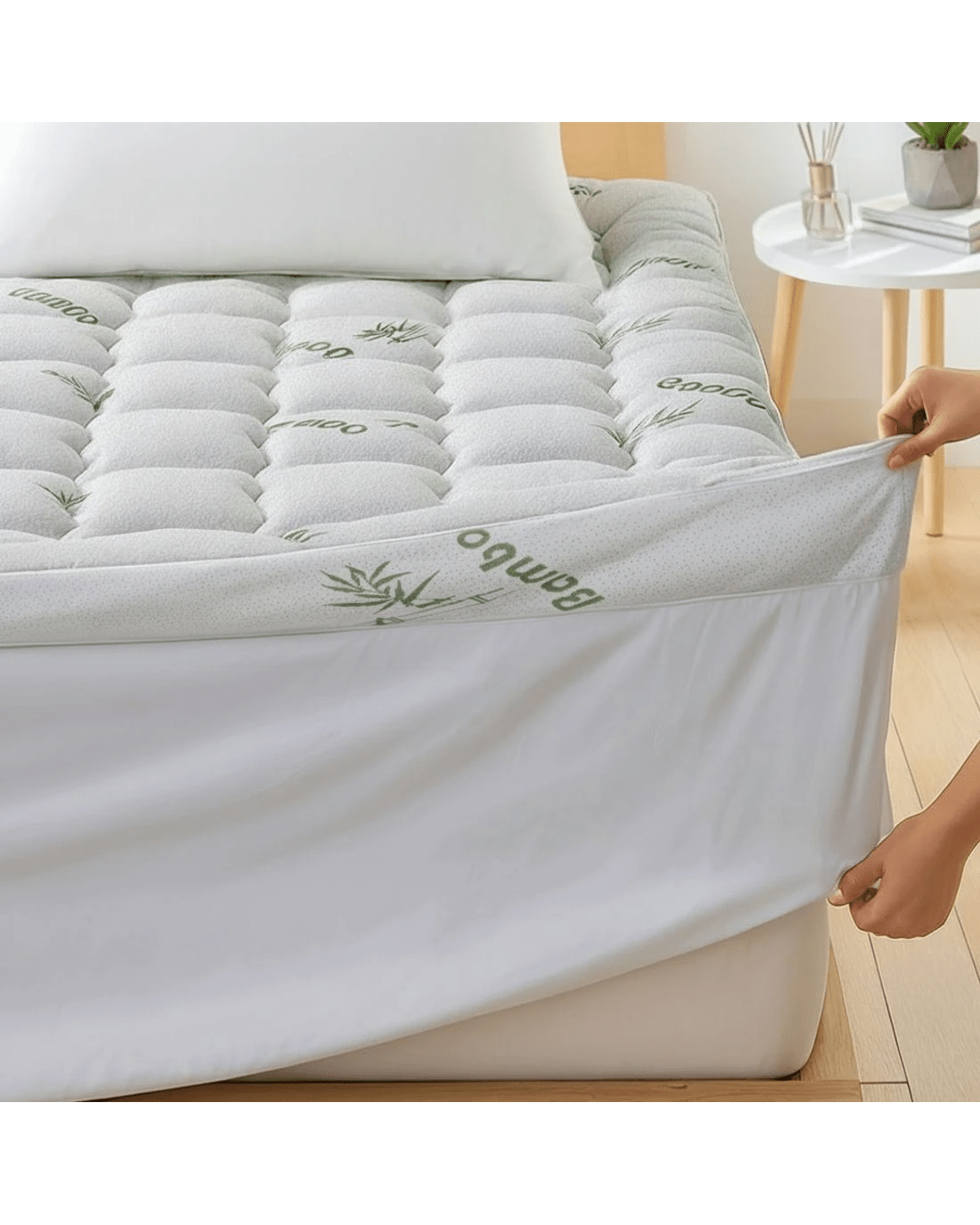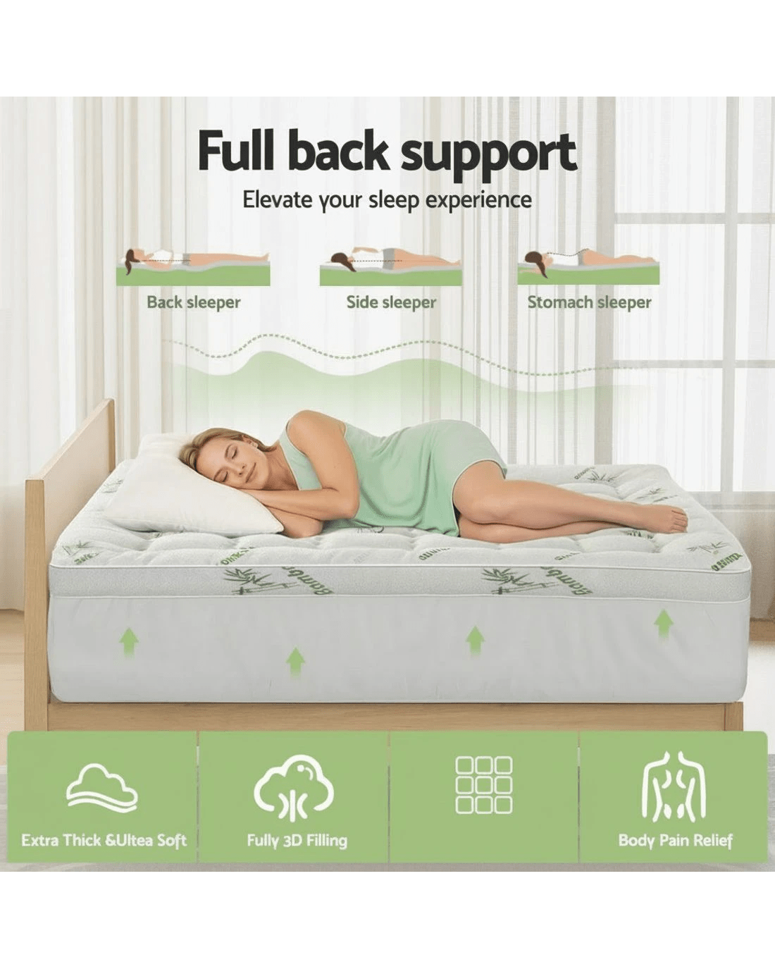 Sold by Aisle SixGiselle Bedding 1500GSM Pillowtop Mattress Topper Bamboo Mattress Pad for Back Pain Relief Washable - White