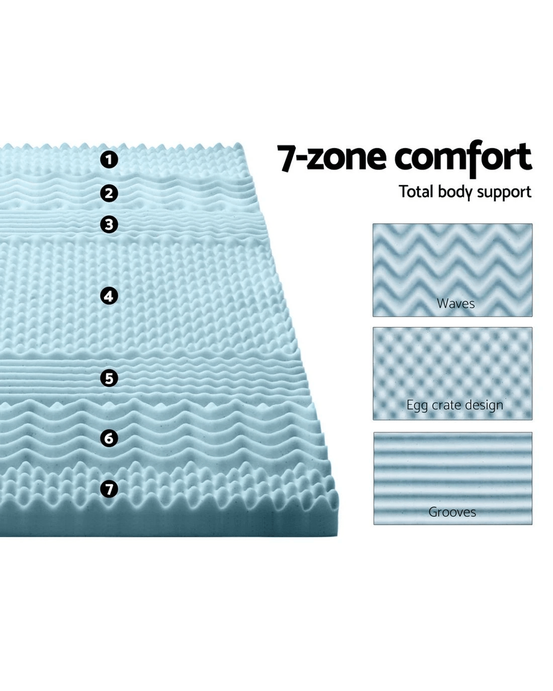 Sold by Aisle SixGiselle Memory Foam Mattress Topper 7-Zone 8cm King Single - King Single Bed - Blue