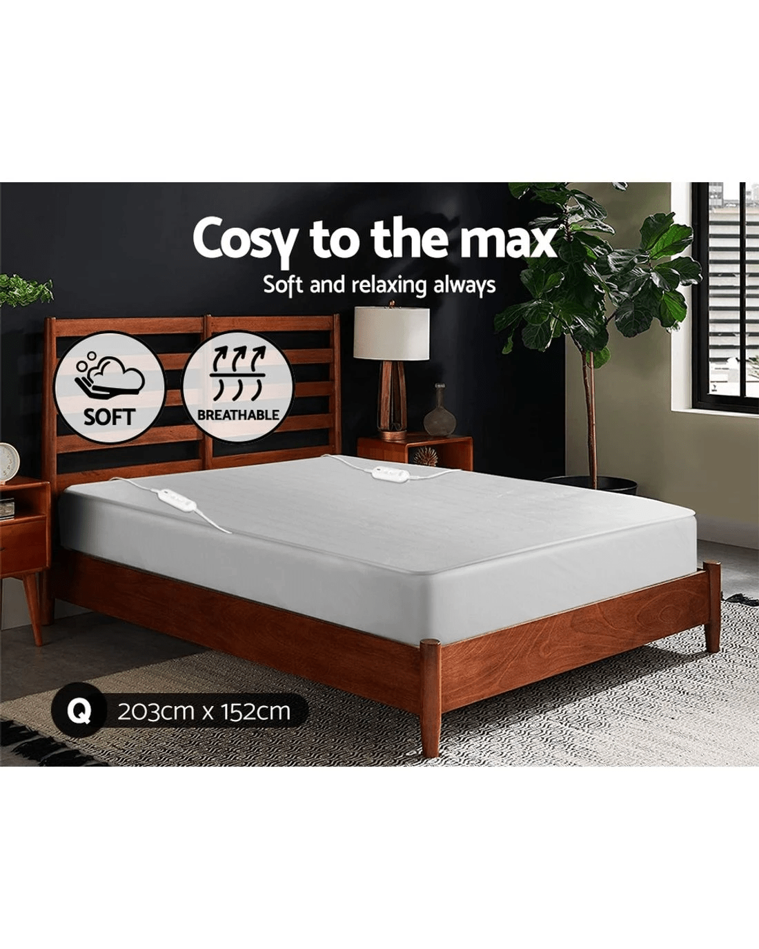 Sold by Aisle SixGiselle Queen Fully Fitted Polyester Electric Blanket 3 Heat Settings Detachable Controller Machine Washable - white