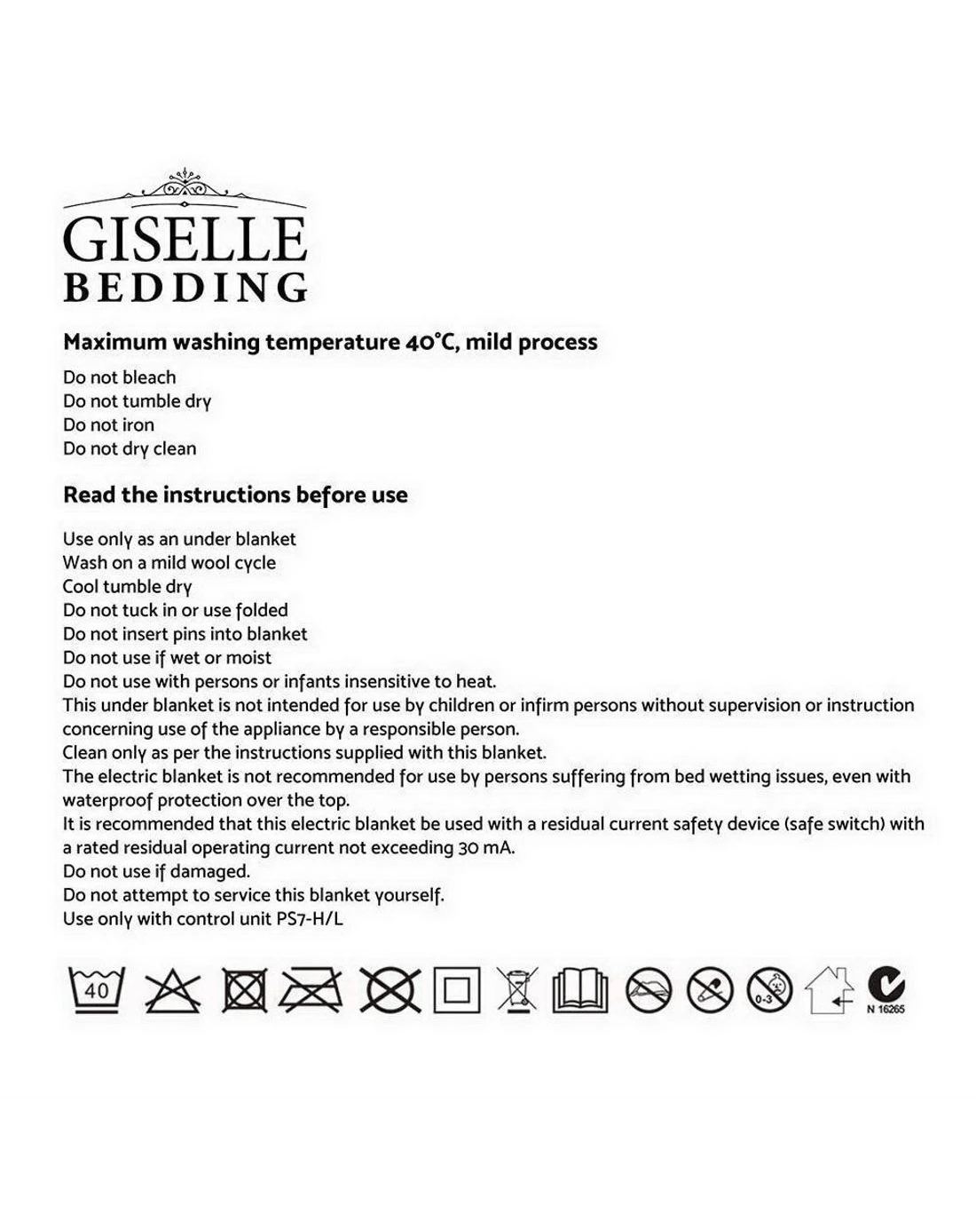 Sleep better every winter night knowing that you have our Giselle Fully Fitted Polyesterc Electric Blanket to help you stay warm and cosy throughout your forty winks. Featuring a 100% polyester underlay made for longlasting and comfortable use, the electric blanket allows you to set up to three different temperature settings using its detachable controller. And if you forget to switch the electric blanket off and it gets too hot, the overheat protection function will kick in and shut off power instantly. Best of all, the electric blanket is machine washable. Simply unplug it (make sure to detach cable from the electric blanket as well) and toss it into the washing machine for a good clean wash. Never let the chill and cold ruin your precious sleep again when you can have the warmth and comfort of our electric blanket to keep you company all night long.