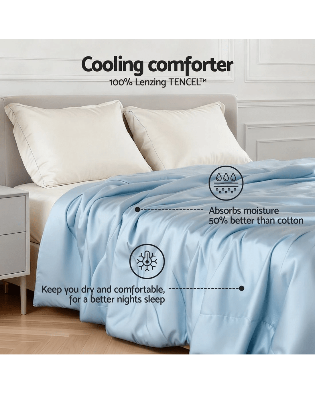 Sold by Aisle SixGiselle Tencel Quilt 200GSM Summer Quilts Comforter Doona Light Weight Soft Throw Blanket Super King - Blue