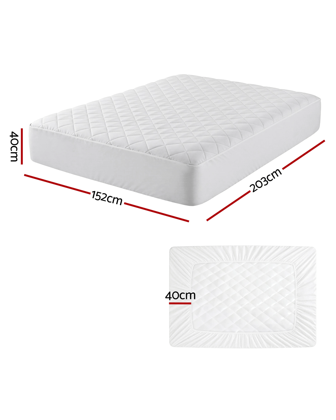 Giselle Waterproof Mattress Protector 100% Cotton Quilted Fitted Cover Queen - Queen Bed - White
