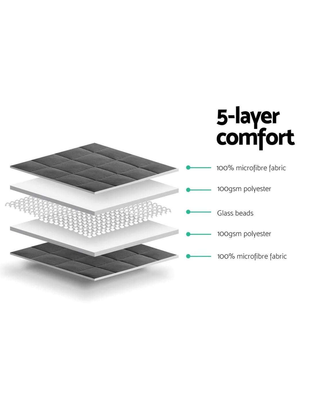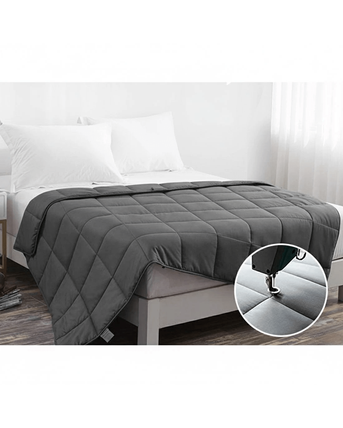 The science behind better sleep lies with a Giselle Bedding Weighted Blanket. It uses the therapeutic power of Deep Touch Pressure Simulation (DTPS) to stimulate pressure points throughout the body, thereby contributing to enhanced sleep, mood and relaxation. Our weighted blanket is engineered to be between 8% and 15% of your body weight to relax the nervous system by simulating the feeling of being hugged or held. This boosts serotonin and melatonin levels and decreases cortisol levels improving your heart rate and blood pressure. In short, you get healthier sleep and awake feeling refershed and re-invigorated. Made of 100% microfibre for both sides, the weighted blanket is filled with polyester and glass beads to create the right amount of pressure for a soothing hugging sensation. The weighted blanket is also close-fitting and conforms to your body shape and adapts to any sleeping posture easily. Not least, its excellent leak-proof stitching and 5-layer comfort ensures that the weighted blanket is ever so durable and comfortable with every use. The weighted blanket is machine washable for total convenience.