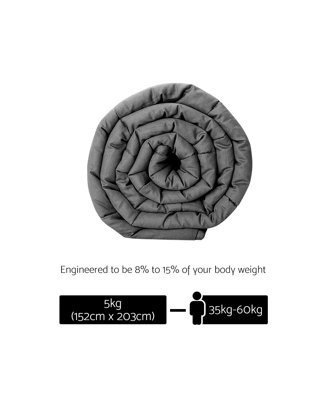 The science behind better sleep lies with a Giselle Bedding Weighted Blanket. It uses the therapeutic power of Deep Touch Pressure Simulation (DTPS) to stimulate pressure points throughout the body, thereby contributing to enhanced sleep, mood and relaxation. Our weighted blanket is engineered to be between 8% and 15% of your body weight to relax the nervous system by simulating the feeling of being hugged or held. This boosts serotonin and melatonin levels and decreases cortisol levels improving your heart rate and blood pressure. In short, you get healthier sleep and awake feeling refershed and re-invigorated. Made of 100% microfibre for both sides, the weighted blanket is filled with polyester and glass beads to create the right amount of pressure for a soothing hugging sensation. The weighted blanket is also close-fitting and conforms to your body shape and adapts to any sleeping posture easily. Not least, its excellent leak-proof stitching and 5-layer comfort ensures that the weighted blanket is ever so durable and comfortable with every use. The weighted blanket is machine washable for total convenience.