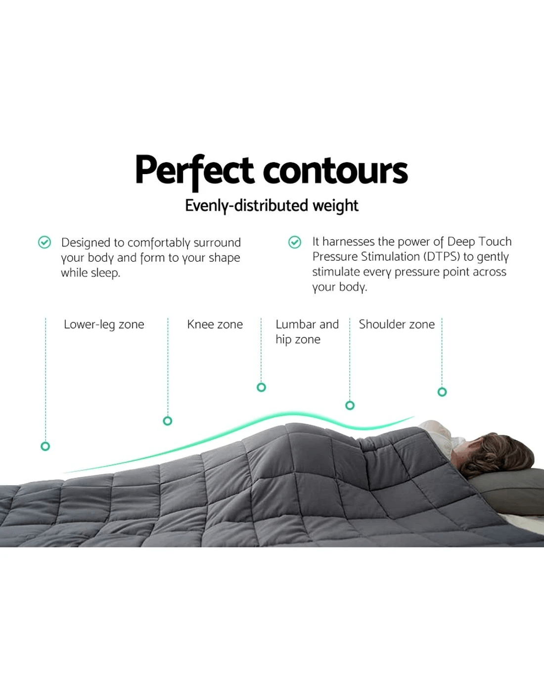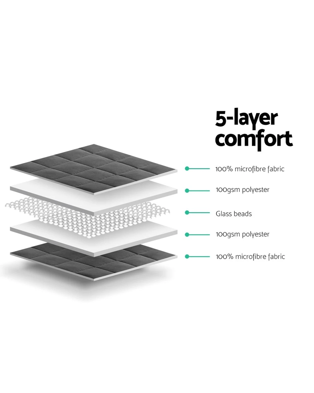 The science behind better sleep lies with a Giselle Bedding Weighted Blanket. It uses the therapeutic power of Deep Touch Pressure Simulation (DTPS) to stimulate pressure points throughout the body, thereby contributing to enhanced sleep, mood and relaxation. Our weighted blanket is engineered to be between 8% and 15% of your body weight to relax the nervous system by simulating the feeling of being hugged or held. This boosts serotonin and melatonin levels and decreases cortisol levels improving your heart rate and blood pressure. In short, you get healthier sleep and awake feeling refershed and re-invigorated. Made of 100% microfibre for both sides, the weighted blanket is filled with polyester and glass beads to create the right amount of pressure for a soothing hugging sensation. The weighted blanket is also close-fitting and conforms to your body shape and adapts to any sleeping posture easily. Not least, its excellent leak-proof stitching and 5-layer comfort ensures that the weighted blanket is ever so durable and comfortable with every use. The weighted blanket is machine washable for total convenience.