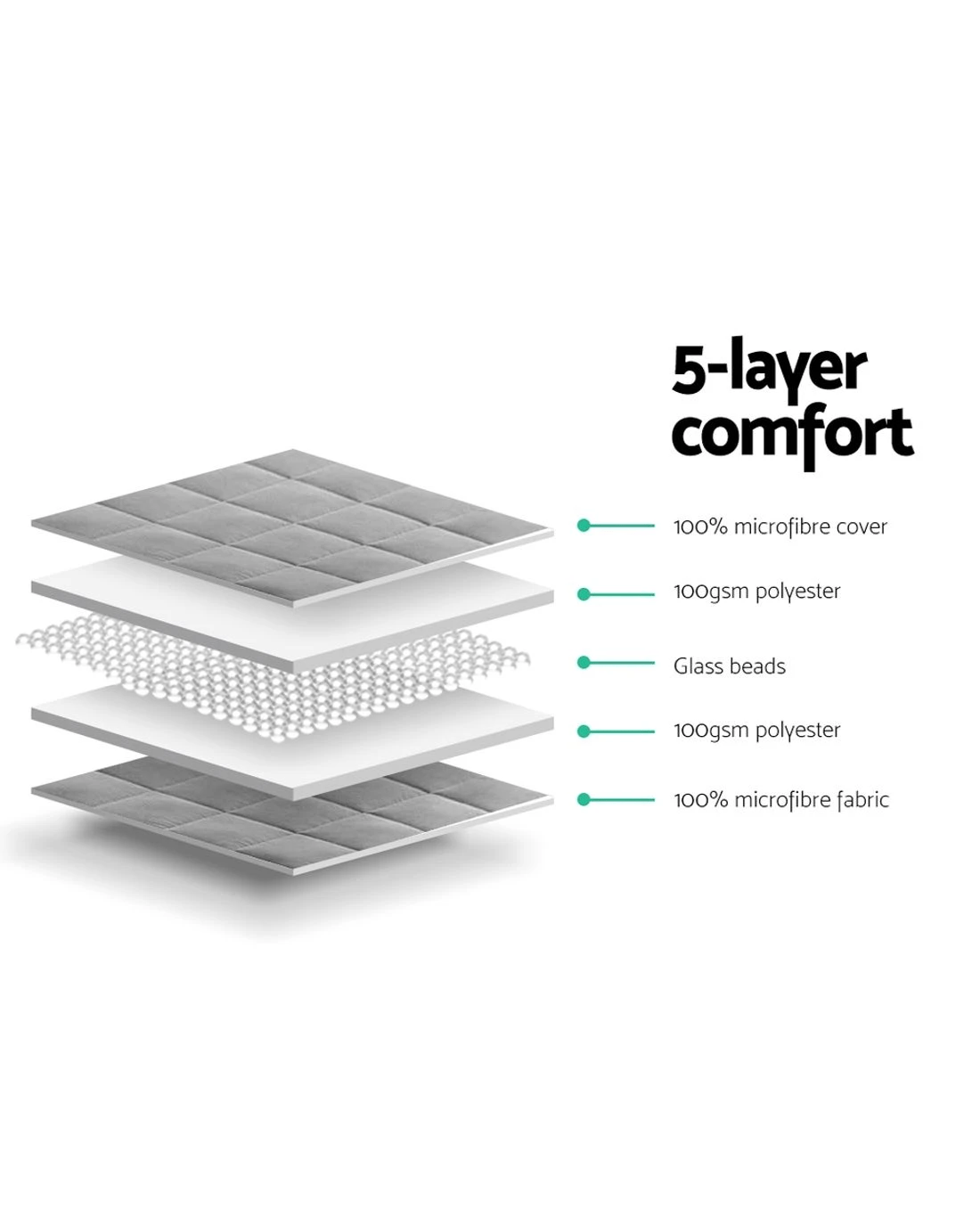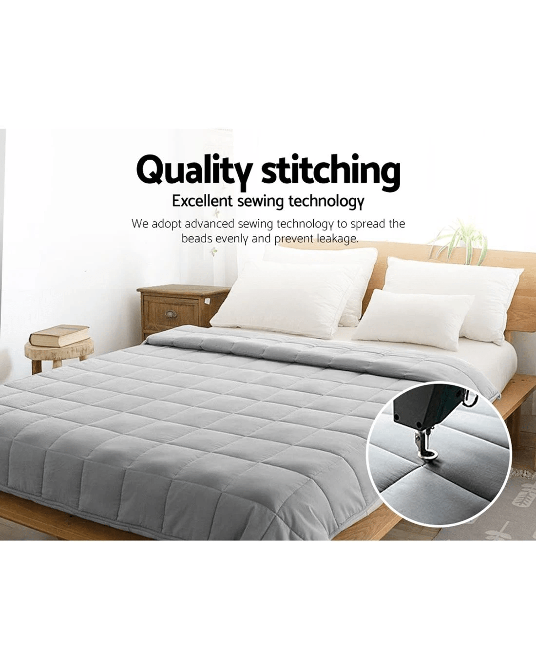 The science behind better sleep lies with a Giselle Bedding Weighted Blanket. It uses the therapeutic power of Deep Touch Pressure Simulation (DTPS) to stimulate pressure points throughout the body, thereby contributing to enhanced sleep, mood and relaxation. Our weighted blanket is engineered to be between 8% and 15% of your body weight to relax the nervous system by simulating the feeling of being hugged or held. This boosts serotonin and melatonin levels and decreases cortisol levels improving your heart rate and blood pressure. In short, you get healthier sleep and awake feeling refershed and re-invigorated. Made of 100% microfibre for both sides, the weighted blanket is filled with polyester and glass beads to create the right amount of pressure for a soothing hugging sensation. The weighted blanket is also close-fitting and conforms to your body shape and adapts to any sleeping posture easily. Not least, its excellent leak-proof stitching and 5-layer comfort ensures that the weighted blanket is ever so durable and comfortable with every use. The weighted blanket is machine washable for total convenience.