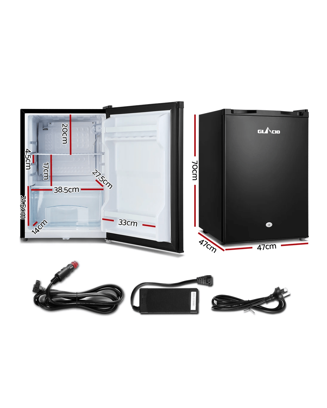 Sold by Aisle SixGlacio 80L Portable Fridge Bar Upright 12V/24V/240V Camping Caravan - Black