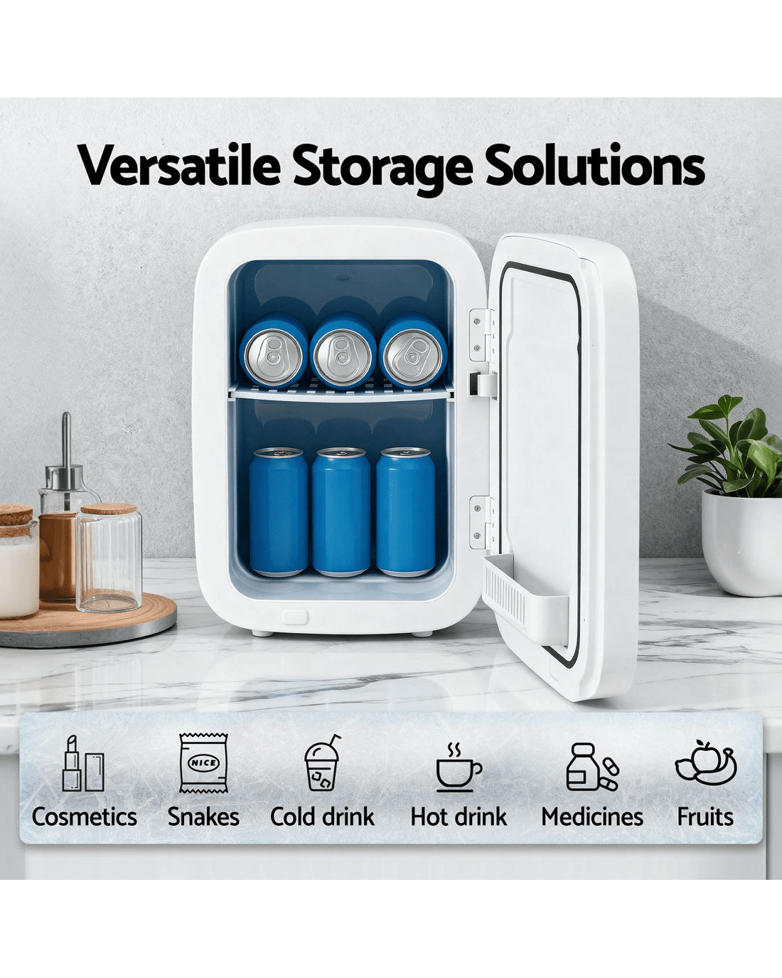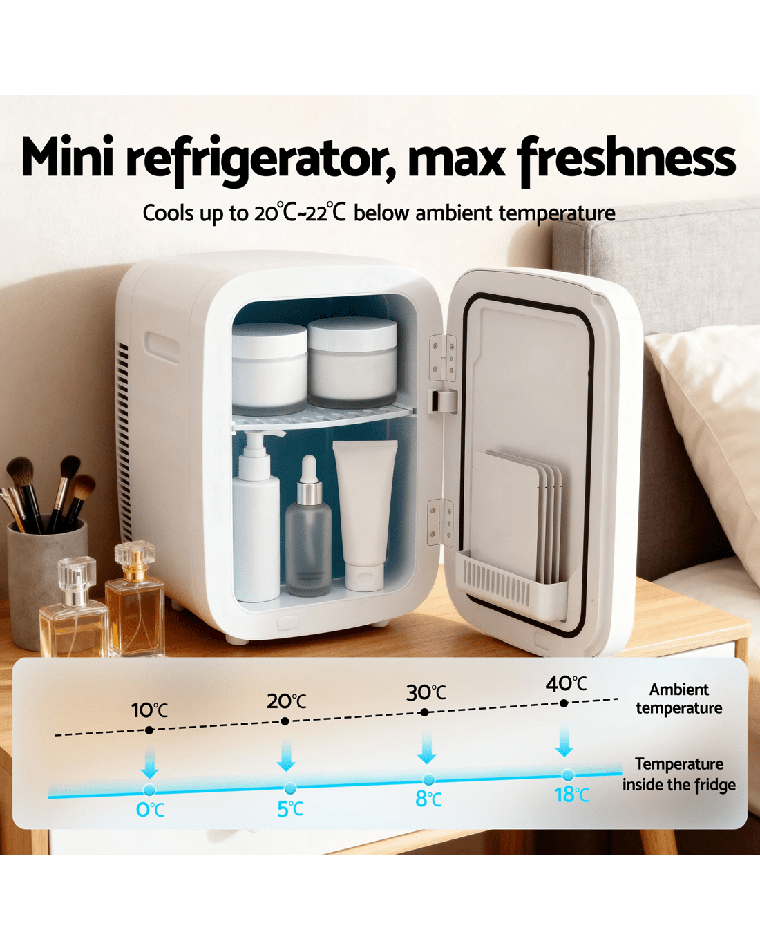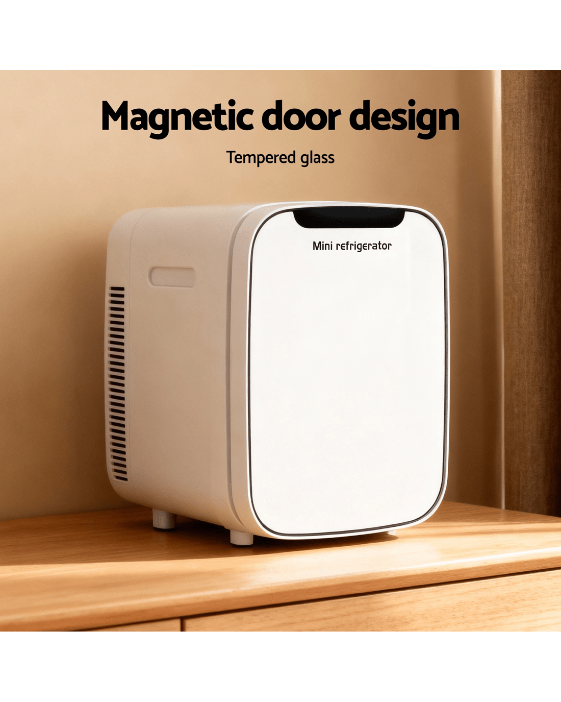 Transform your daily routine with this versatile mini fridge, the perfect solution for keeping your essentials at the ideal temperature. Featuring dual cooling and heating functions, it chills contents to 22℃ below ambient or warms them up to 60℃. This flexibility makes it perfect for preserving your skincare products, cosmetics, drinks, and snacks all year round. With a compact 22L capacity, the fridge offers smart storage with a sleek, modern design. Its tempered glass and magnetic door keep your items neatly organized and easily accessible.Designed for true portability, this fridge offers flexible power options, operating seamlessly on both a 12V car socket and a 220V home outlet. This ensures reliable cooling and warming whether you're at home, in the office, or on a trip. What's more, its quiet semiconductor system provides a peaceful environment, making this stylish and practical appliance the perfect addition to any personal space.