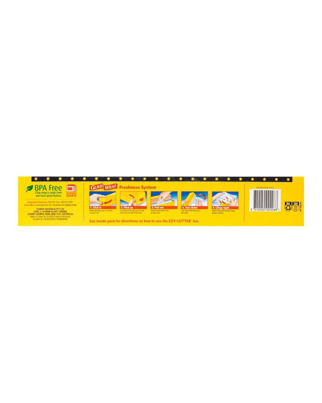Glad Wrap can be used to keep your food fresh for longer. Glad Wrap is fridge safe and microwave safe so you can keep your food from splattering in the microwave by covering your food without compromising the warming up process. This Glad Wrap comes packaged in a handy carton with an Ezy Cutter Bar so that you can easily tear the wrap at your desired length.