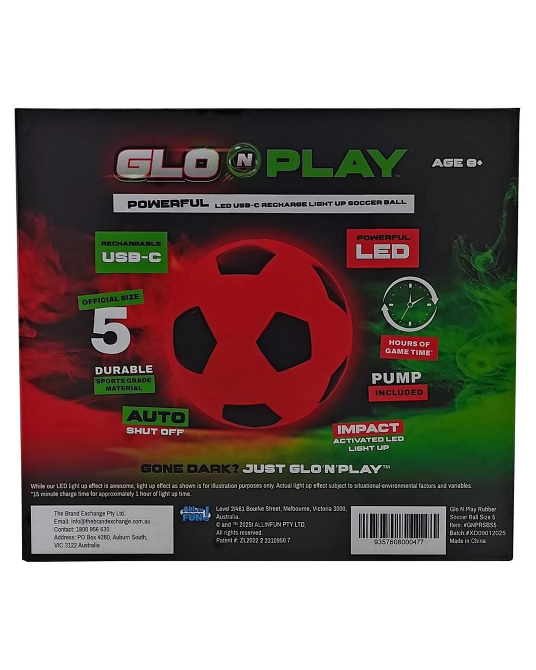 LIGHT UP THE NIGHT with the Glo N Play Soccer Ball. No need to quit playing because it's dark!! Extend hours of fun, for all ages! Impact activated, light up soccer ball has everything you need to work on your strike well into the night. The powerful LED Light up Holographic soccer ball is rechargeable for endless hours of game time.