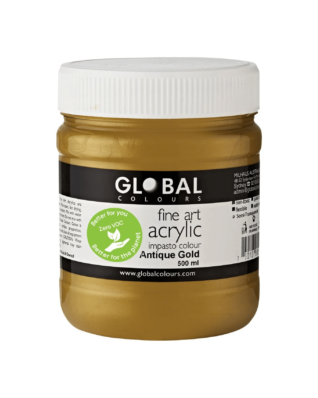 Sold by OfficeworksGlobal Colours Acrylic Paint Zero VOC 500mL Antique Gold