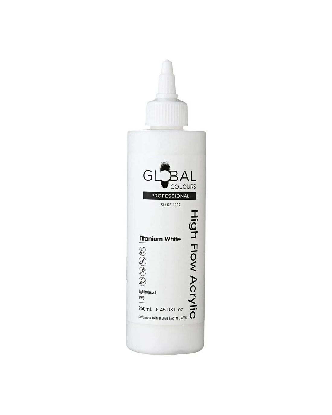 Global Colours High Flow Acrylic Paint 250mL Titanium White