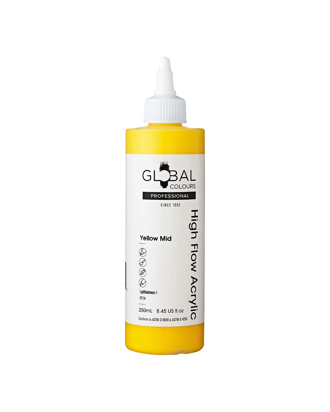 Sold by OfficeworksGlobal Colours High Flow Acrylic Paint 250mL Yellow Mid