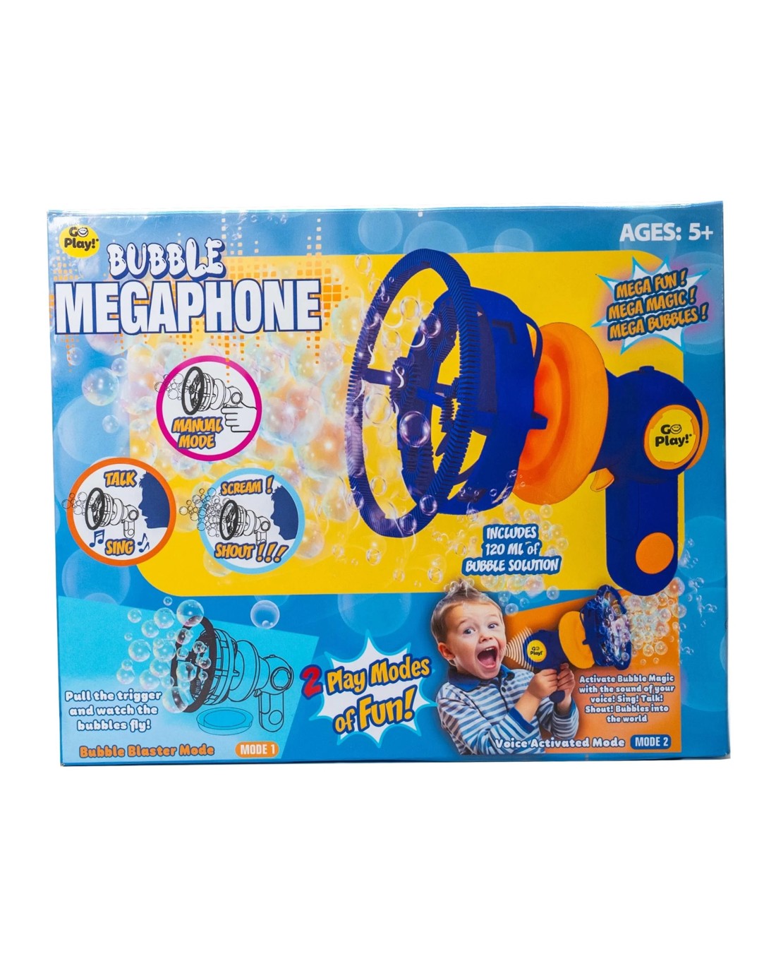 Bring bubble play to the next level with two exciting modes: Sound Activation Mode that lets kids bring bubbles to life with their voice, and Manual Mode for hands-on fun. Sing your favourite song, talk, scream or shout for mega bubbles and even bubbles inside bubbles! Designed for kids ages 5 and up, this bubble blower includes a 120ml bubble solution. Easy to power up and enjoy hours of bubble fun with standard 3x AA batteries (not included) Ages 5 +