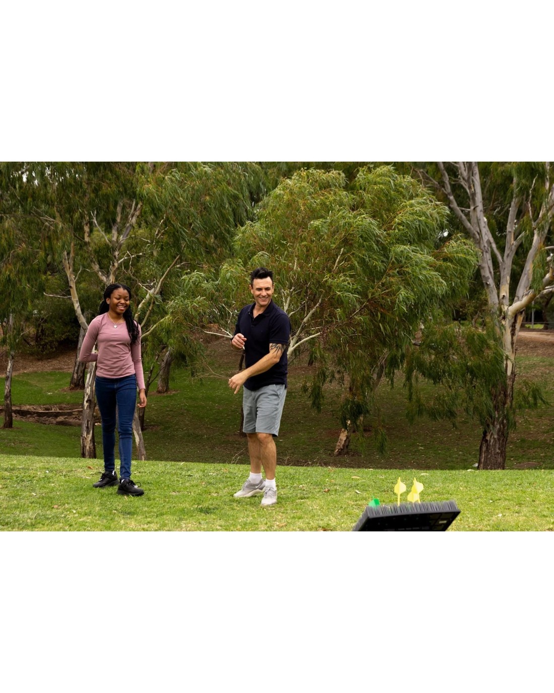 Go Play! Stick em Lawn Dart set is a new twist on the classic game of lawn darts with easy set up and pack down! Set up the bristle target and then let 'em fly! Ages 8 +