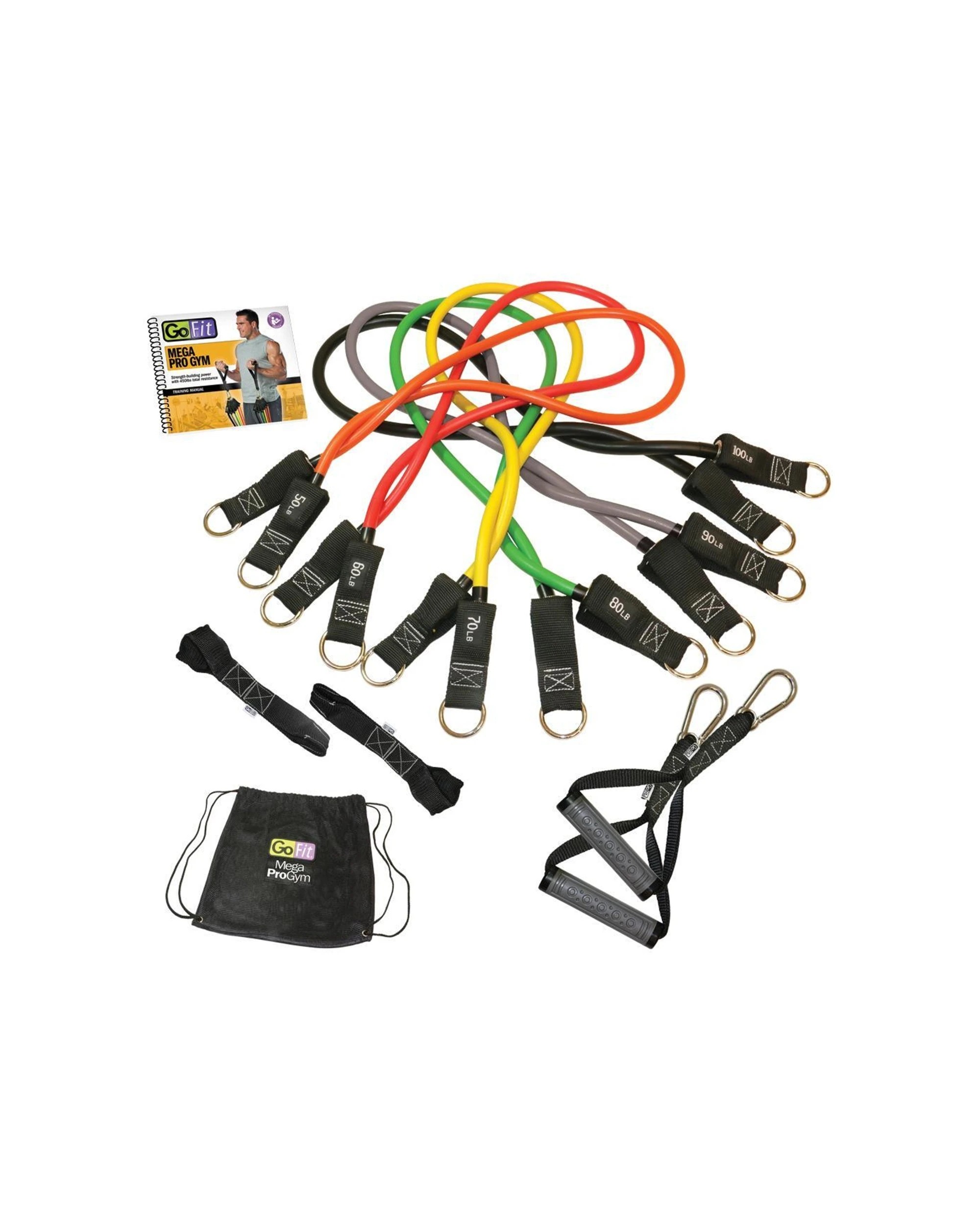 GoFit Mega Pro Gym Strength Training Set 450lb Portable Resistance 6 Tubes - Black