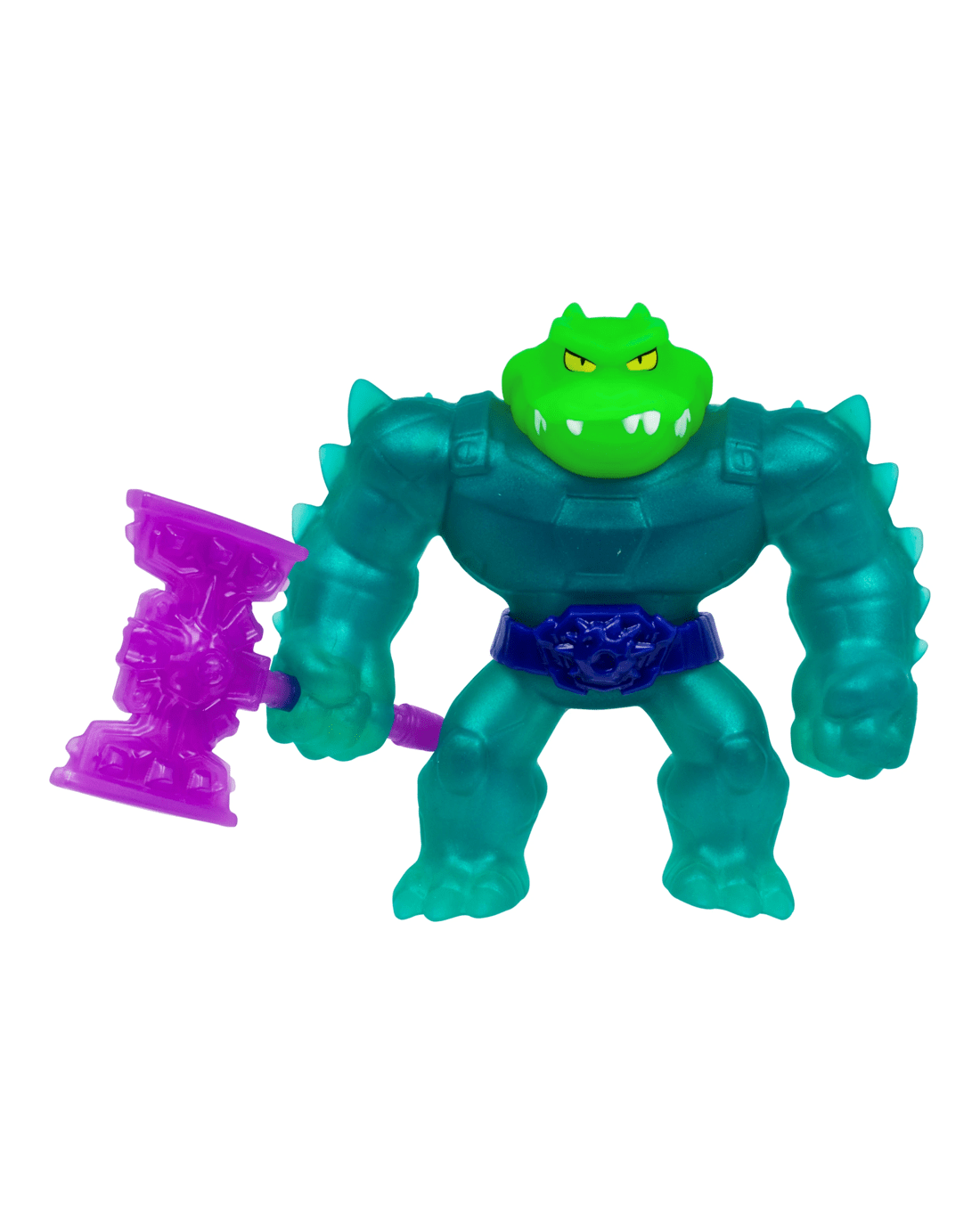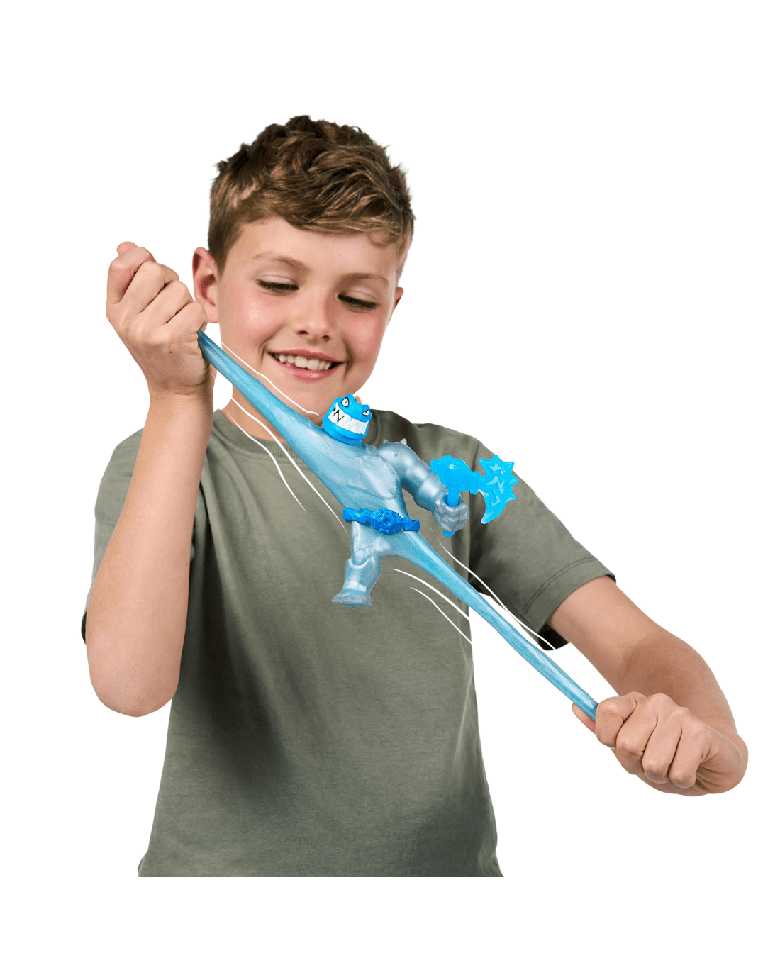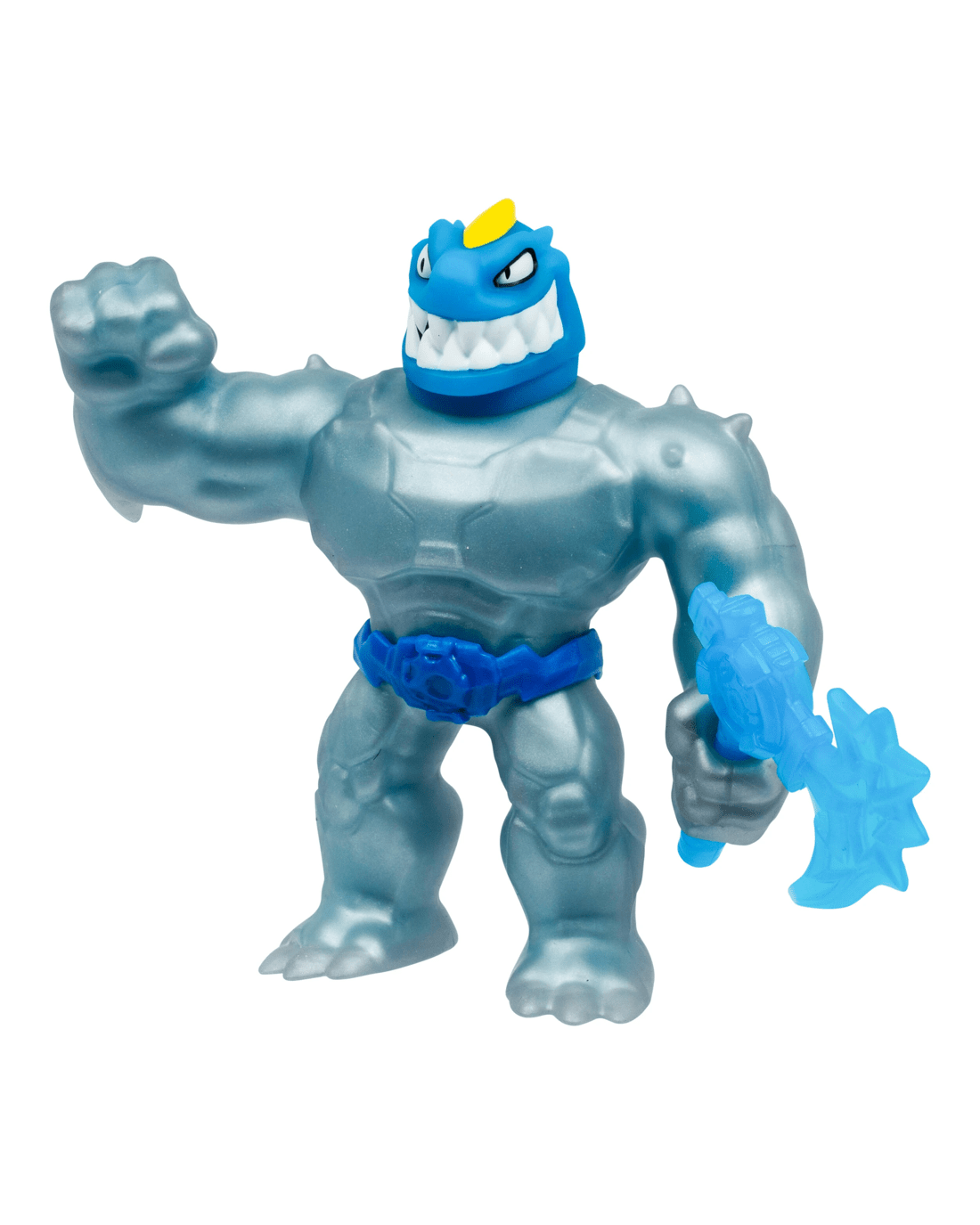 Let's kick some goo! Brace yourself for a meteoric showdown with the all-new Heroes of Goo Jit Zu Meteor Madness Versus Pack. Will Tyro the T-Rex be strong enough to defeat Rock Jaw, or will evil prevail? Tyro has been equipped with a powerful, interchangeable Power Axe, designed for extreme stretch battle strikes against Rock Jaw. But will Rock Jaw's Power Hammer hold up against Tyro's tyrannosaurus attacks?  With bold styling and the ability to stretch up to three times their size, Meteor Madness Tyro is ready to take action-packed adventure to the next level, unleashing stretchy battle action havoc on the evil  Rock Jaw!