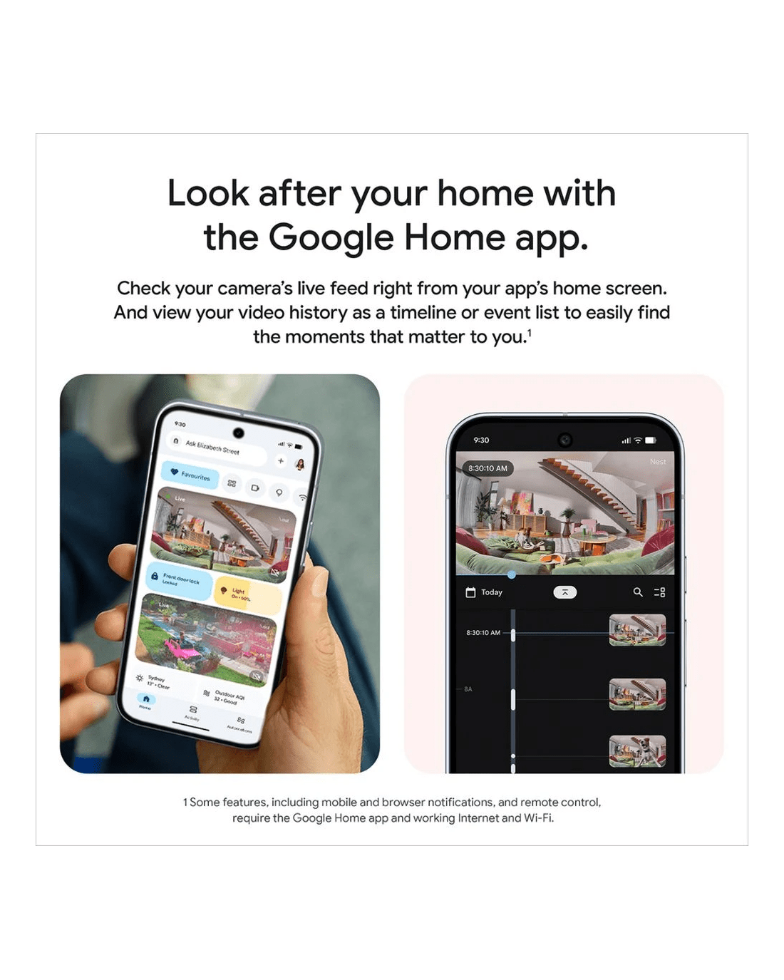- Use the Google Home app to check up on things from anywhere, with live 24/7 1080p HD video.**