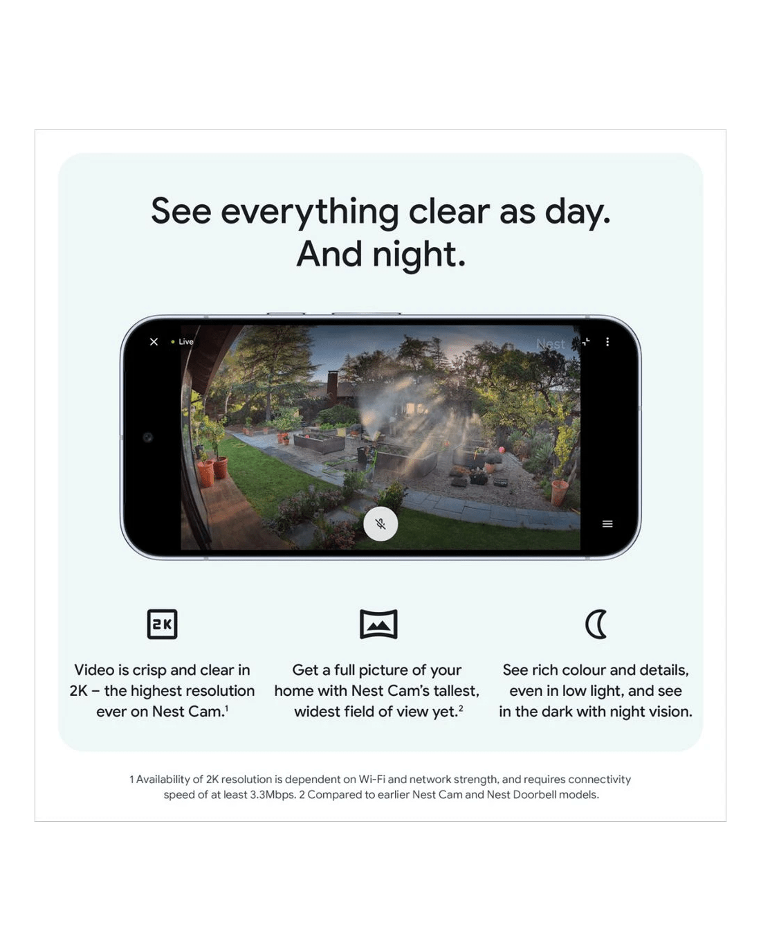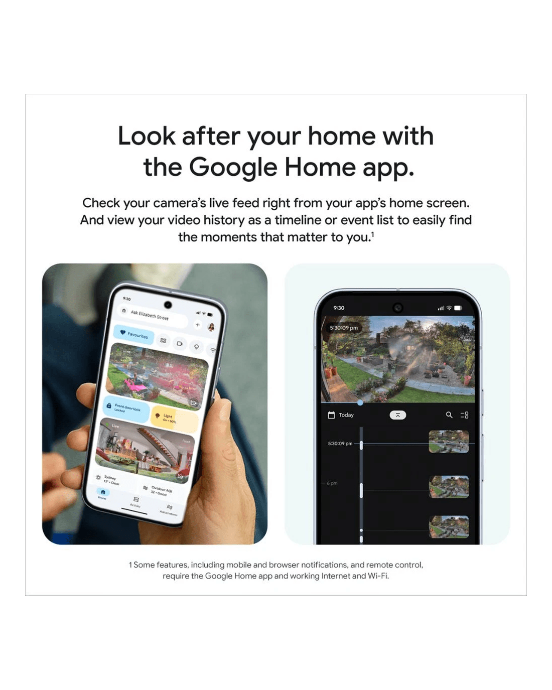 - Use the Google Home app to check up on things from anywhere, with live 24/7 1080p HD video.**