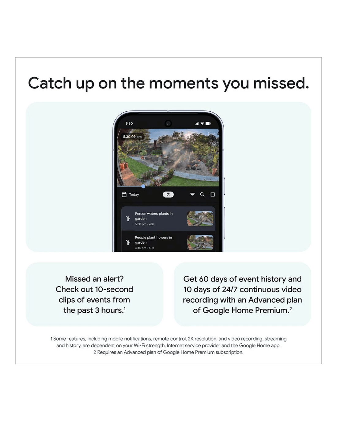 - If you miss a notification or other event, you can go back and see what happened with three hours of recording included.***