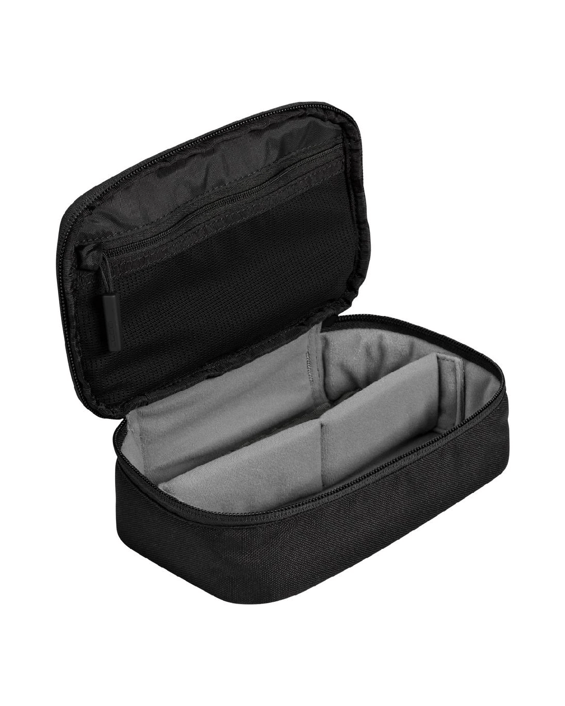 - It features zipper closures and a flexible, hook-and-loop divider.