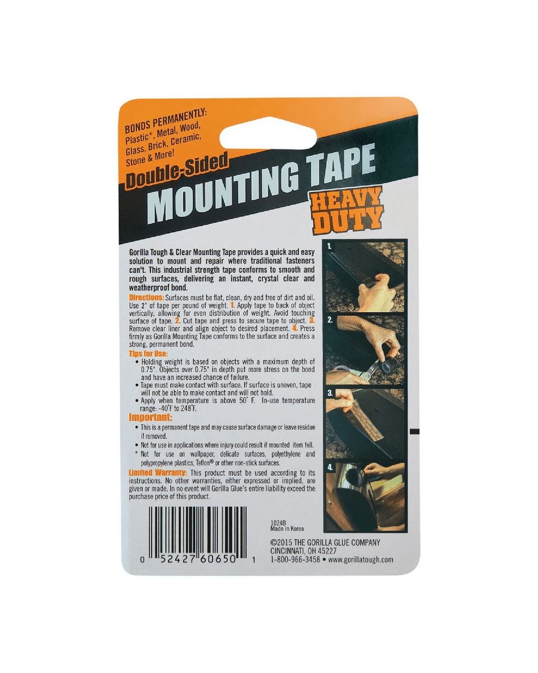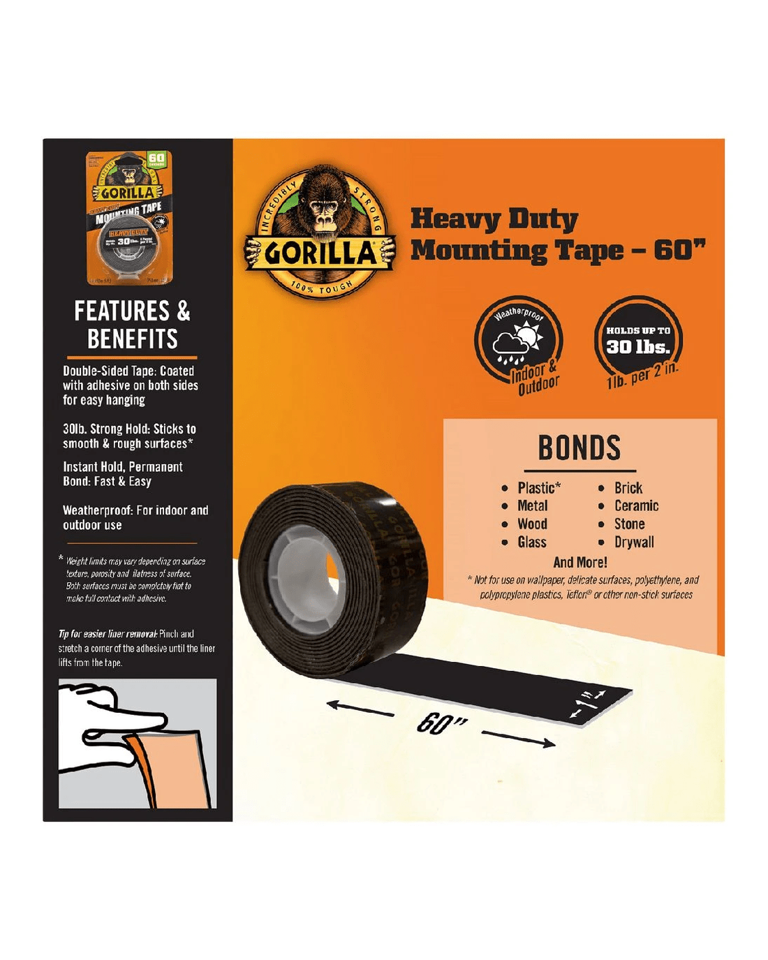 This Gorilla Heavy Duty Mounting Tape is a double-sided tape that mounts instantly, for a permanent and weather-proof bond. It's an industrial strength mounting tape, supporting up to 13.6 kg and sticks to both smooth and rough surfaces*. It's perfect for indoor and outdoor projects, making completing DIY projects a breeze.