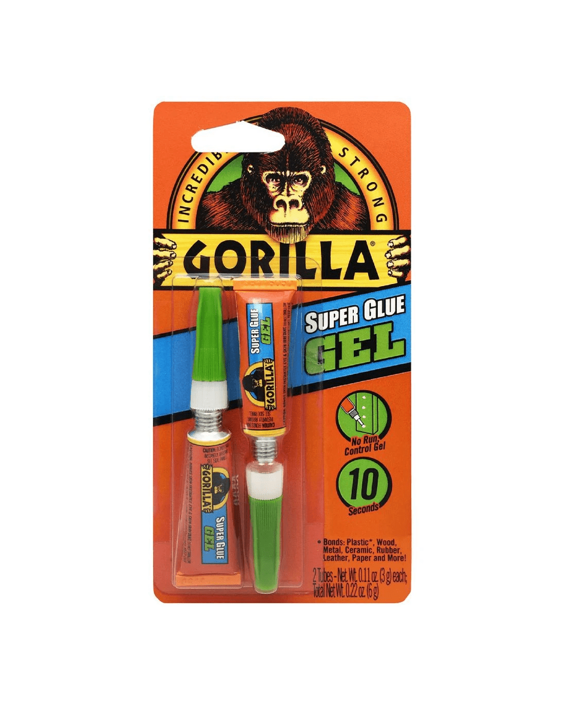 Approach those pending repairs around the house using the Gorilla Super Glue Gel. It has a thicker, more-controlled formula that dries in 10-45 seconds, and is designed to absorb drops, impacts, and shocks. It works across a variety of materials, including plastic, metal, stone, and fabric.