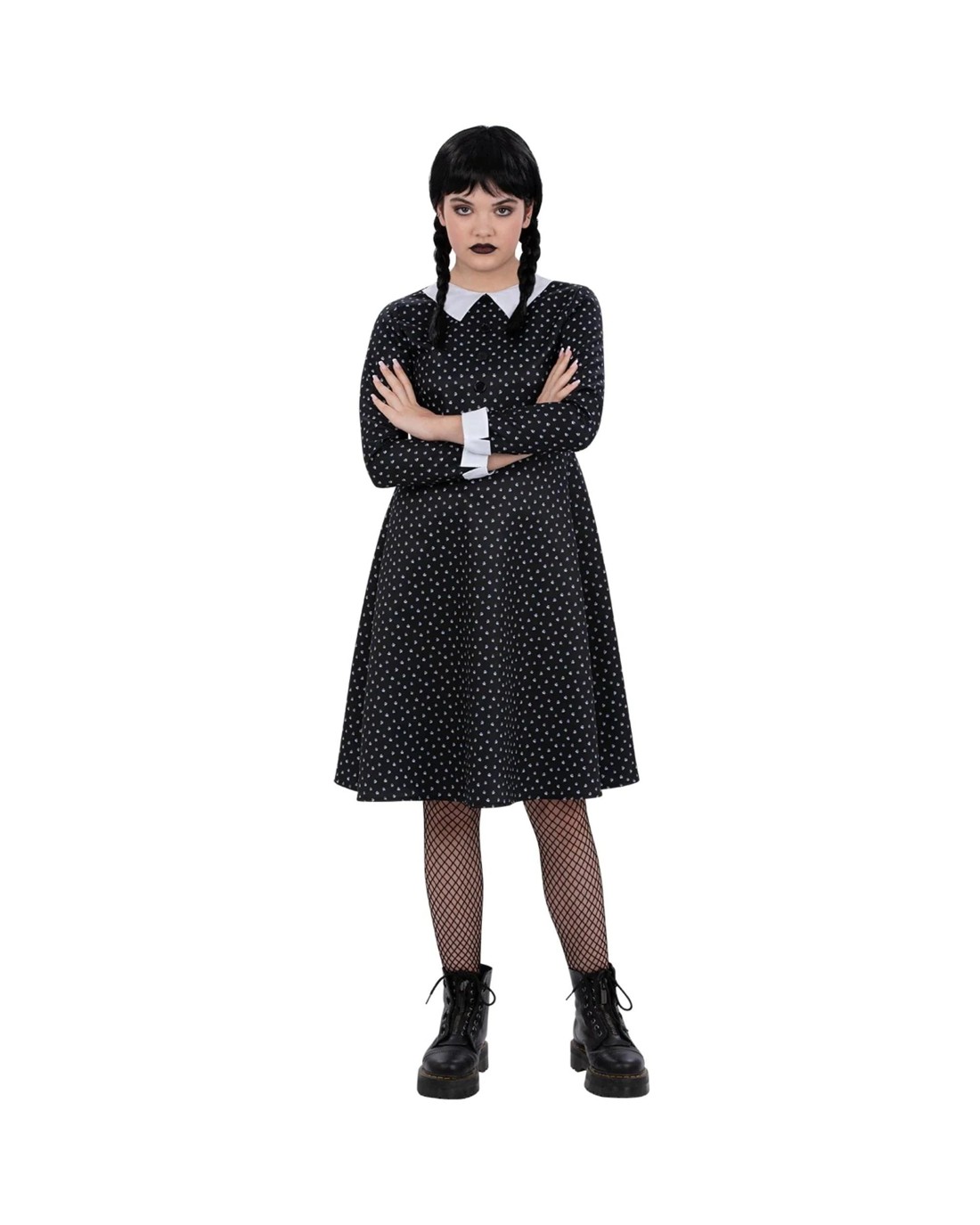 Let your little one transform into a bleak and stoic faced student with this Gothic School Girl Spotted Dress costume! Ages 4 - 6