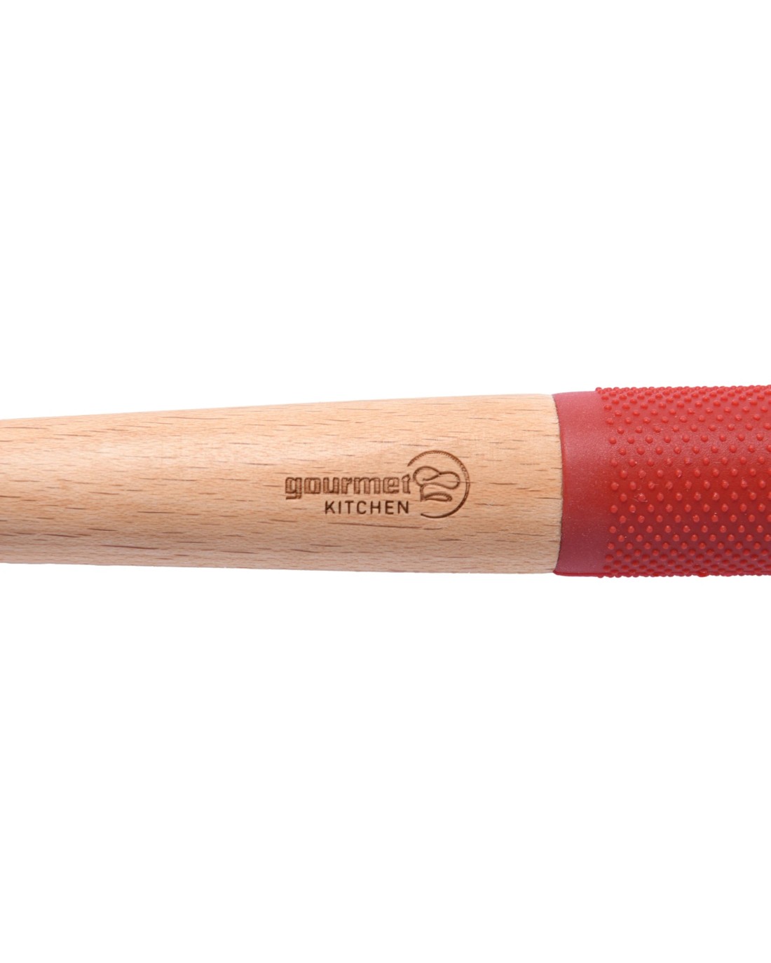 Sold by DI HomeGourmet Kitchen Rustic Beech Wood Slotted Spoon with Silicone Grip - Red