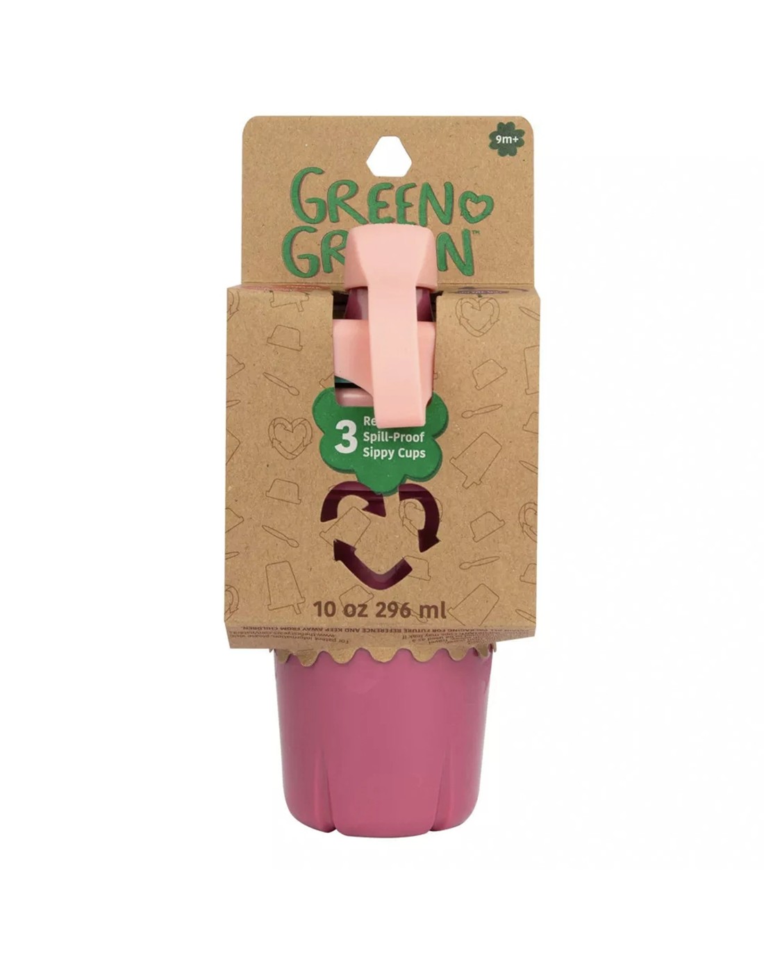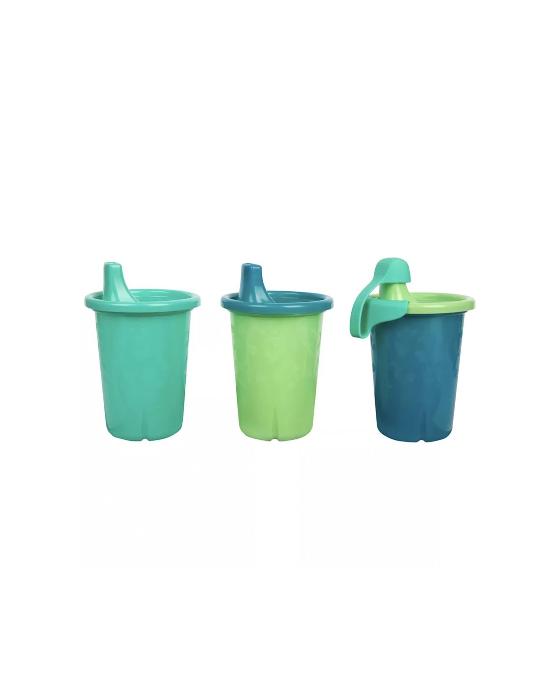 Green Grown 2x 3pc Spill Proof Drinking Sippy Cups Nursery Kids 296ml - Multi