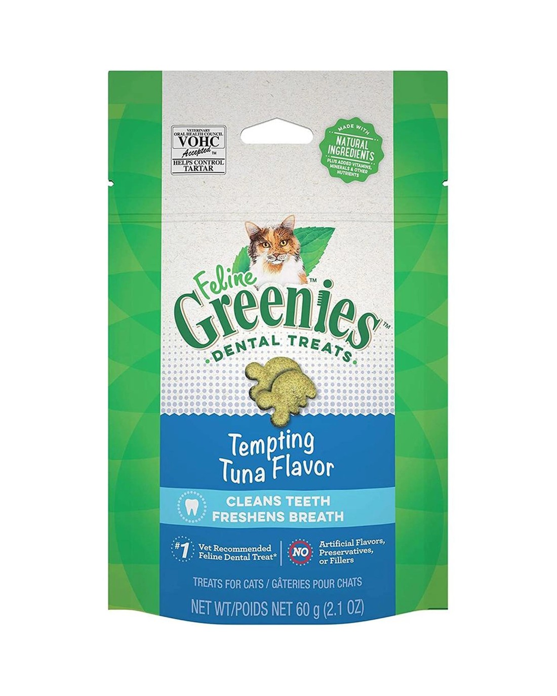 Feline Greenies Dental Treats have The Veterinary Oral Health Council (VOHC) Seal of Acceptance for tartar reduction.