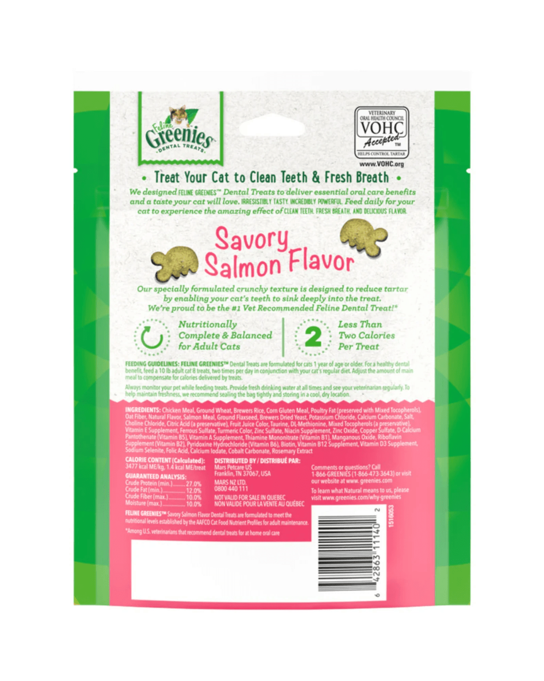 Key Benefits: • The #1 vet-recommended dental treat for cats • Unique shape and crunchy texture proven to reduce tartar buildup • Irresistible salmon flavour cats love • Made from high-quality, highly digestible ingredients • Formulated to meet AAFCO Cat Food Nutrient Profiles for adult maintenance
