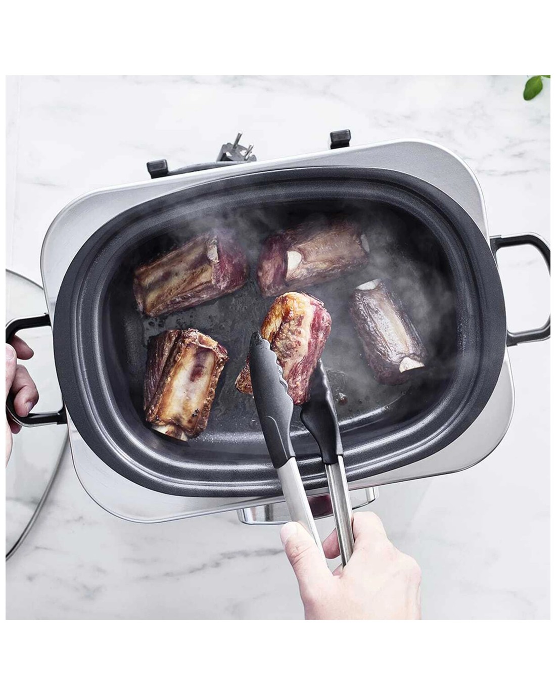 Flavour doesn’t happen in an instant. Create tasty dishes and family-sized meals with massive flavour—our slow cooker creates mouth-watering tastes with the press of a button. Sear your food to start, then cook it low and slow to draw out maximum flavour. Slow Cook, Roast, Brown/Sauté, and Steam with the easy-to-use presets! Plus, the large LCD screen makes finding your setting simple while the striking body is a countertop stunner. Take your time while cooking, then clean up quickly with Thermolon™ Volt, a healthy ceramic non-stick coating specially designed for kitchen appliances.