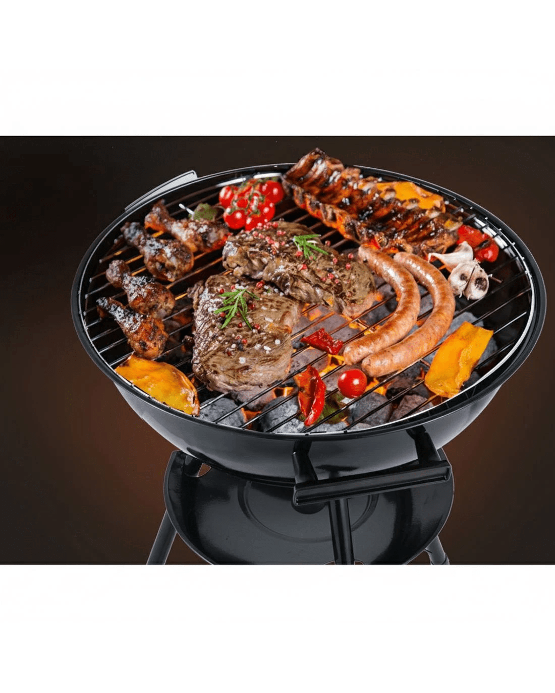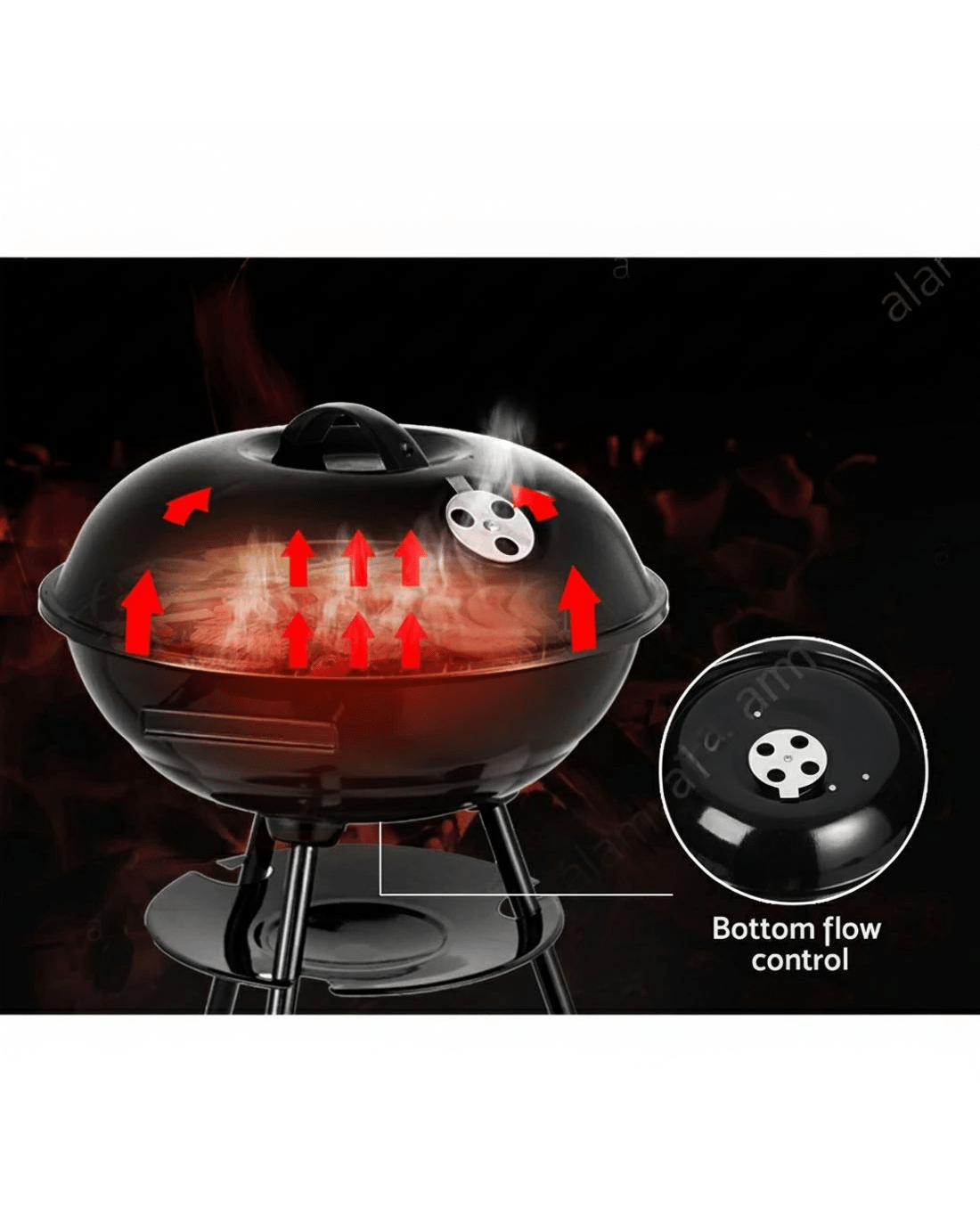 Grill and smoke your food in exceptional style with our outstanding Grillz Portable BBQ Smoker. Comprising a chrome-coated steel BBQ grill set on a sturdy frame with a handy cover, the thick metal body renders the smoker excellent heat retention and heat distribution properties. Ensuring all the natural flavours and delights of your cooking are absorbed back into the meats for its delectable goodness. Furthermore, the two flow controls also helps to ensure your cooking always turns out sumptuous and mouthwatering. Inside, the smoker has grease collection tray and a convenient charcoal rack sits neatly beneath the smoker for hassle-free use. The smoker also features two-sided handles for easy carry. Not least, the two wheels enables the smoker to be carted around for outdoor gatherings, parties, picnics or any special event.