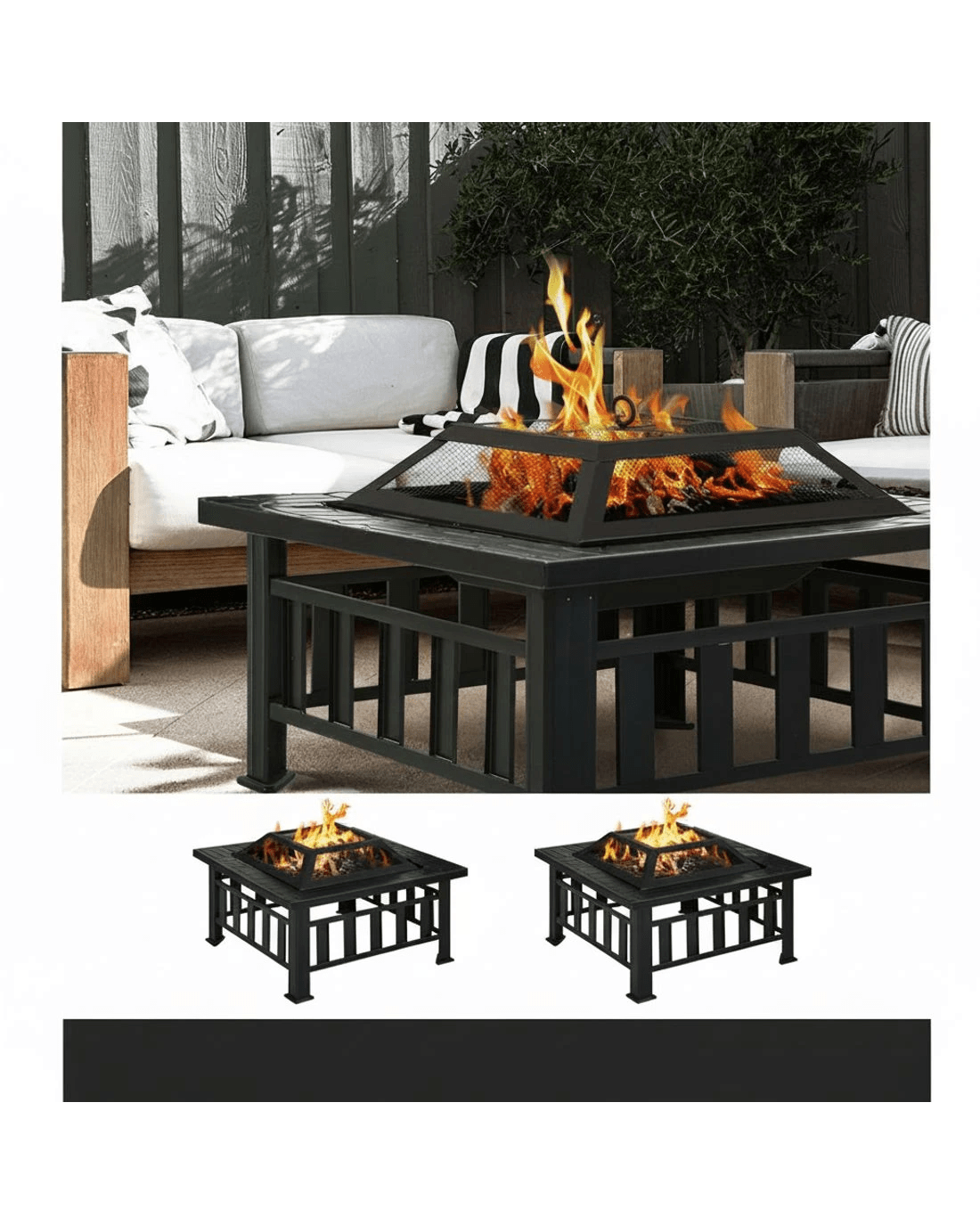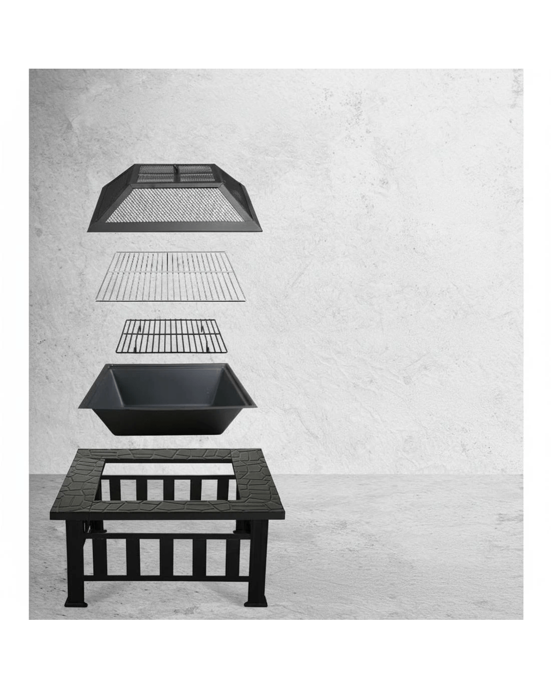 The Fire Pit/BBQ outdoor table comes with all the necessary accessories to get the fire going: fire pit tray, log grate, mesh drome, chrome-plated BBQ grill and a fire poker. Best of all, using the Fire Pit/BBQ is not limited only to winter as it can be used for all seasons. Just get the fire wood and you're good to go for a cosy mouth-watering time.