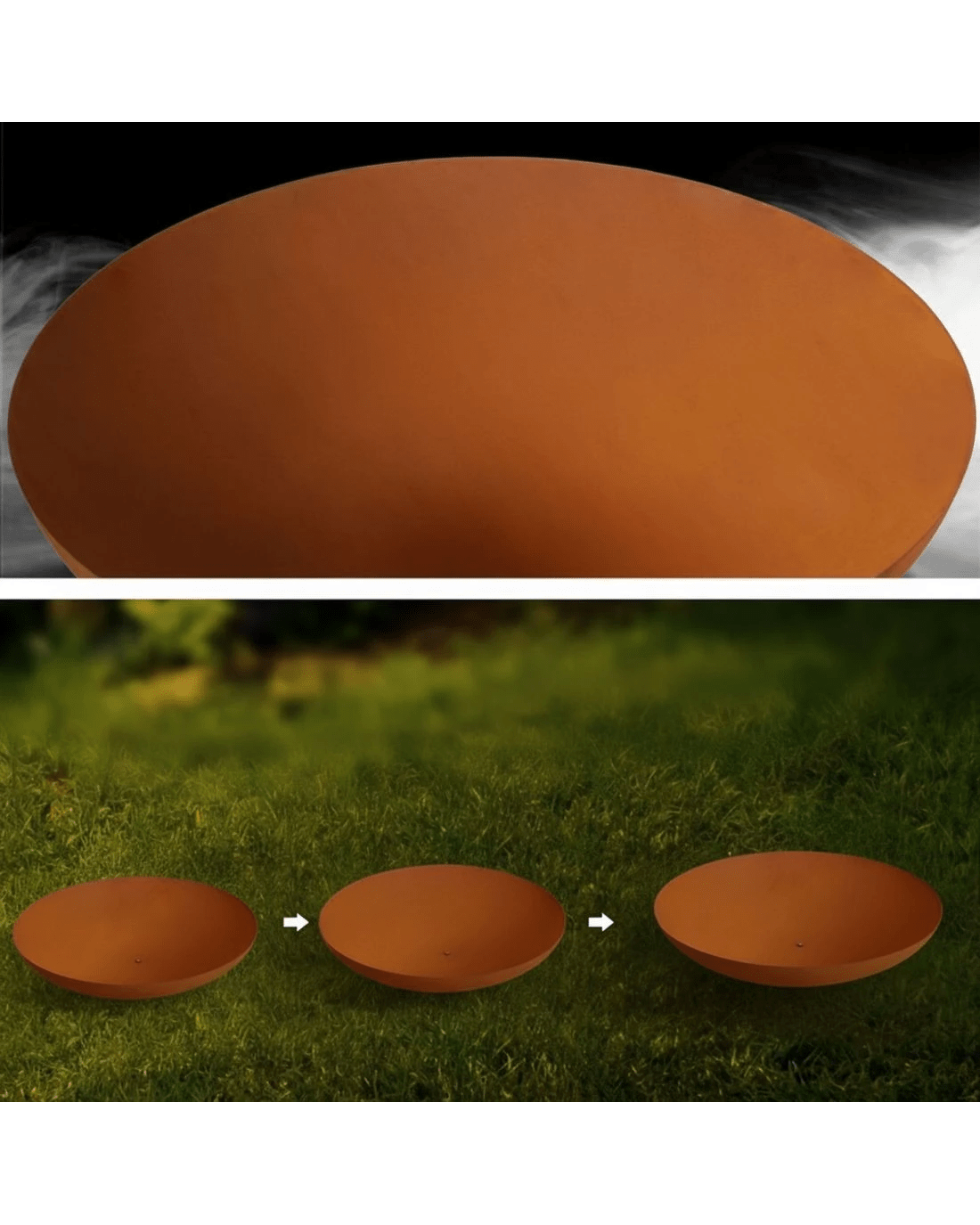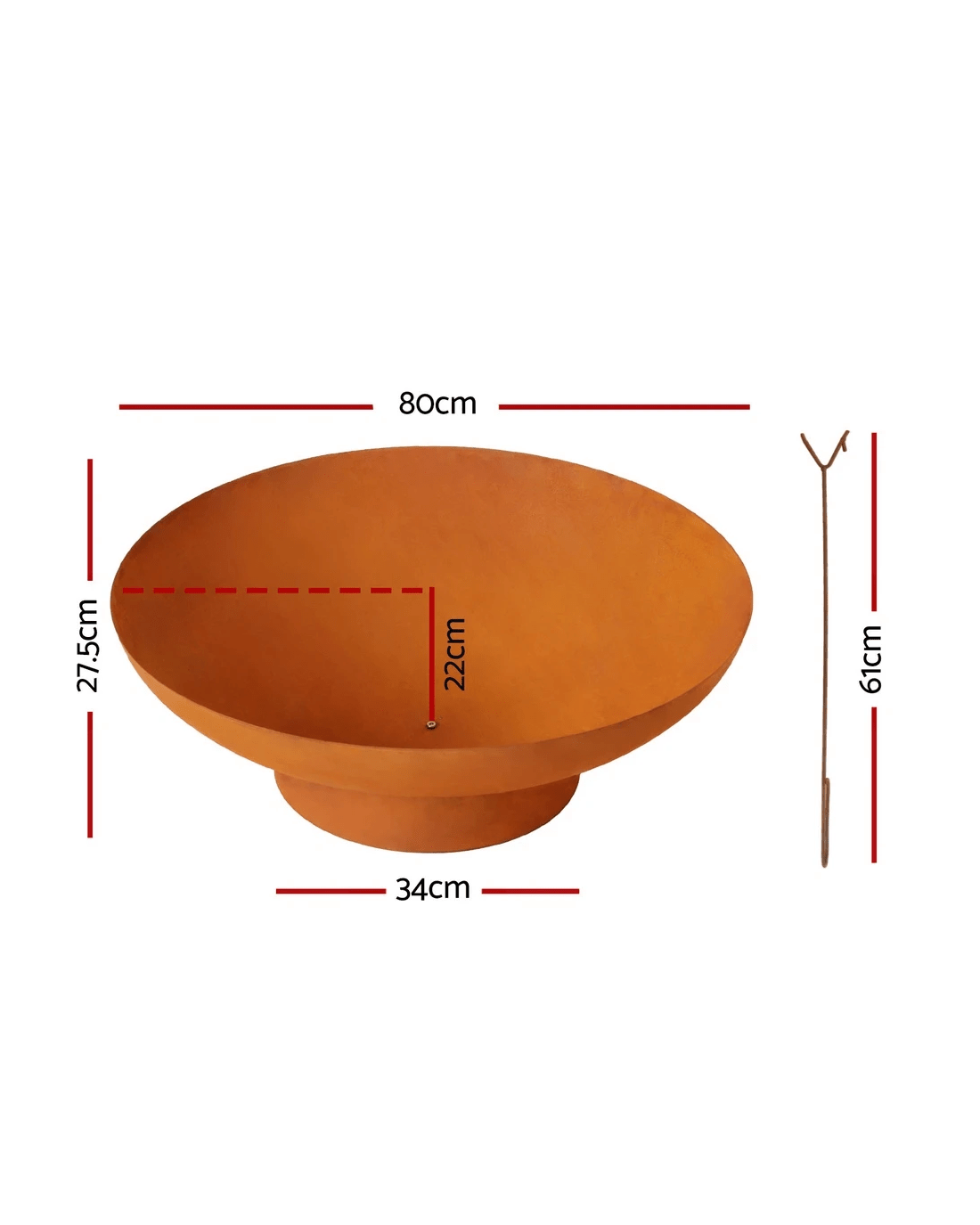 Fire bowl size: 80cm x 22cm