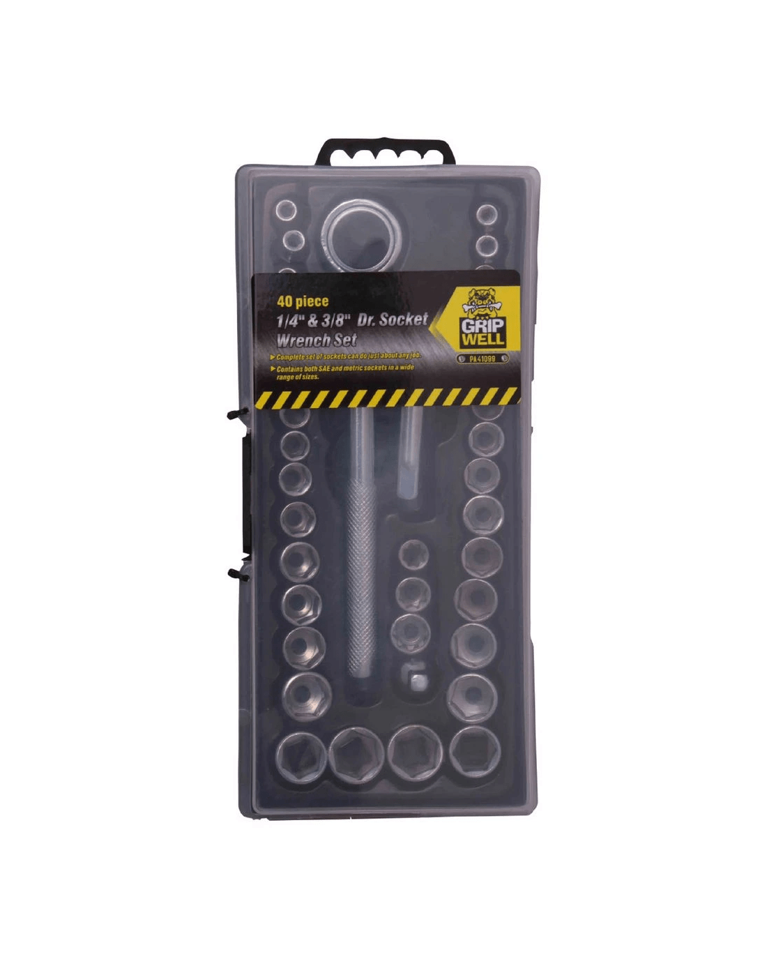 This Gripwell Socket Set comes with a variety of SAE and mm sizes so you'll be able to find the right size for the job. The sockets are chrome plated for added durability.