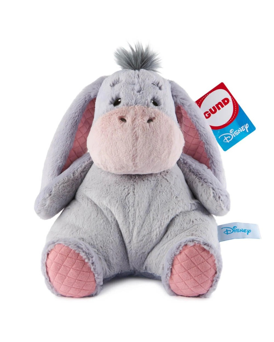 - Understuffed, huggably floppy seated Eeyore features soft grey plush with embroidered accents